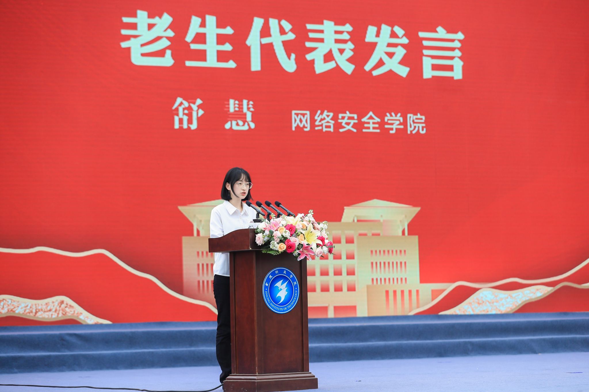 在校生代表舒慧发言