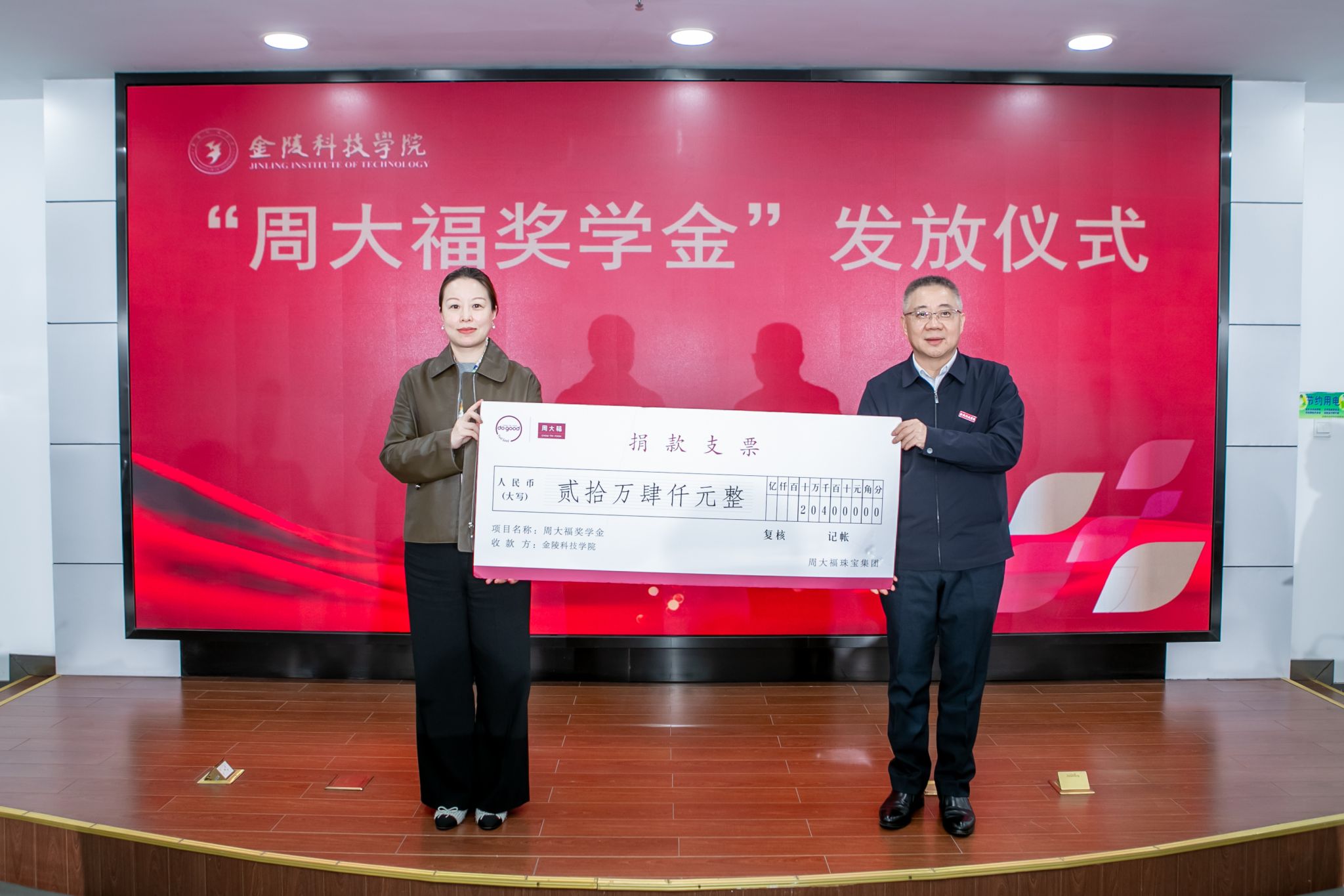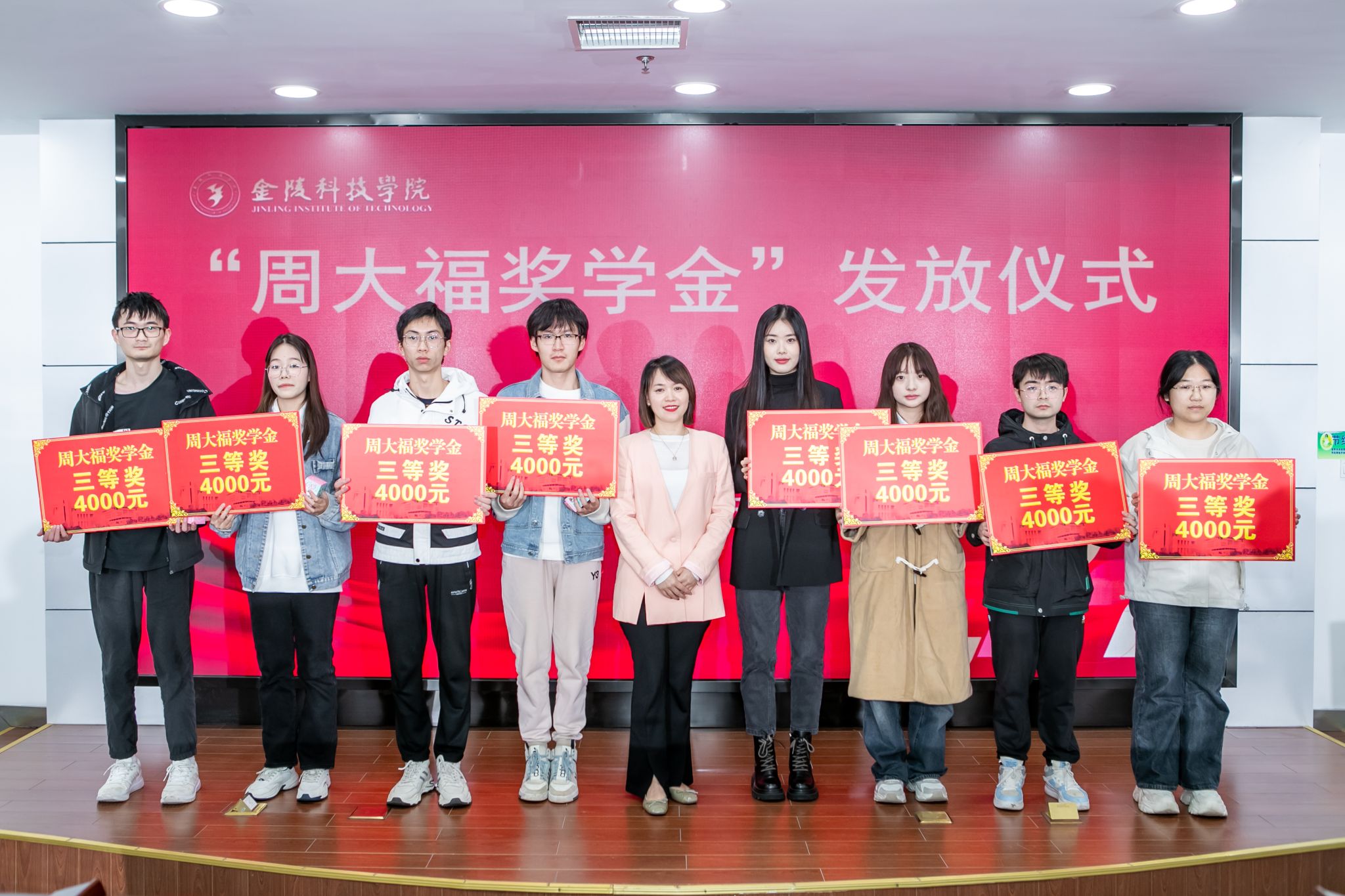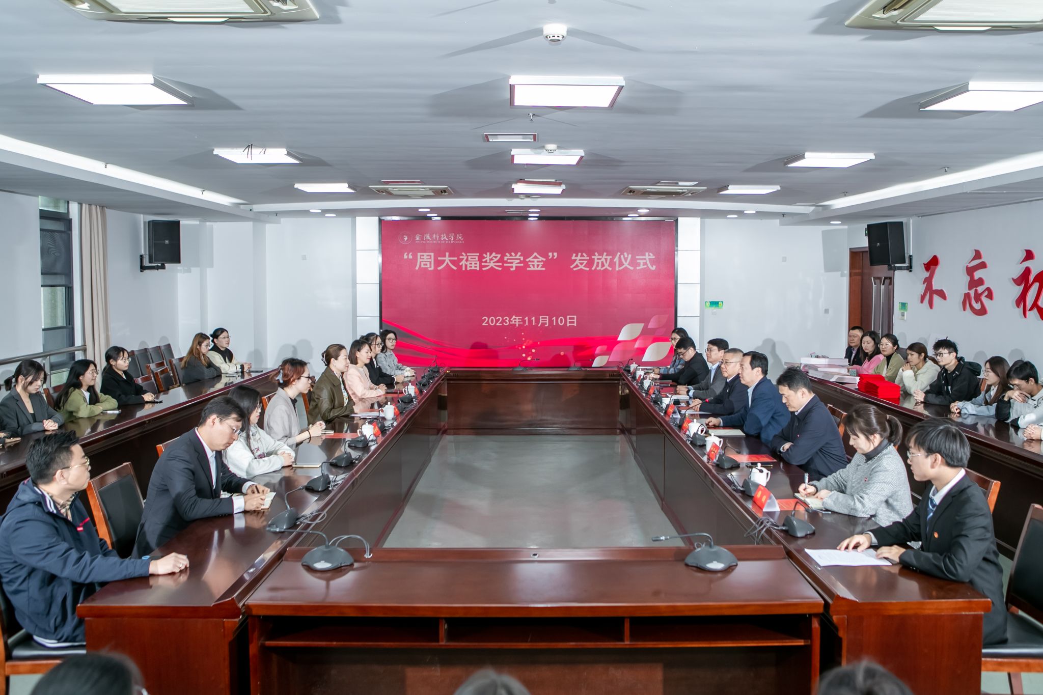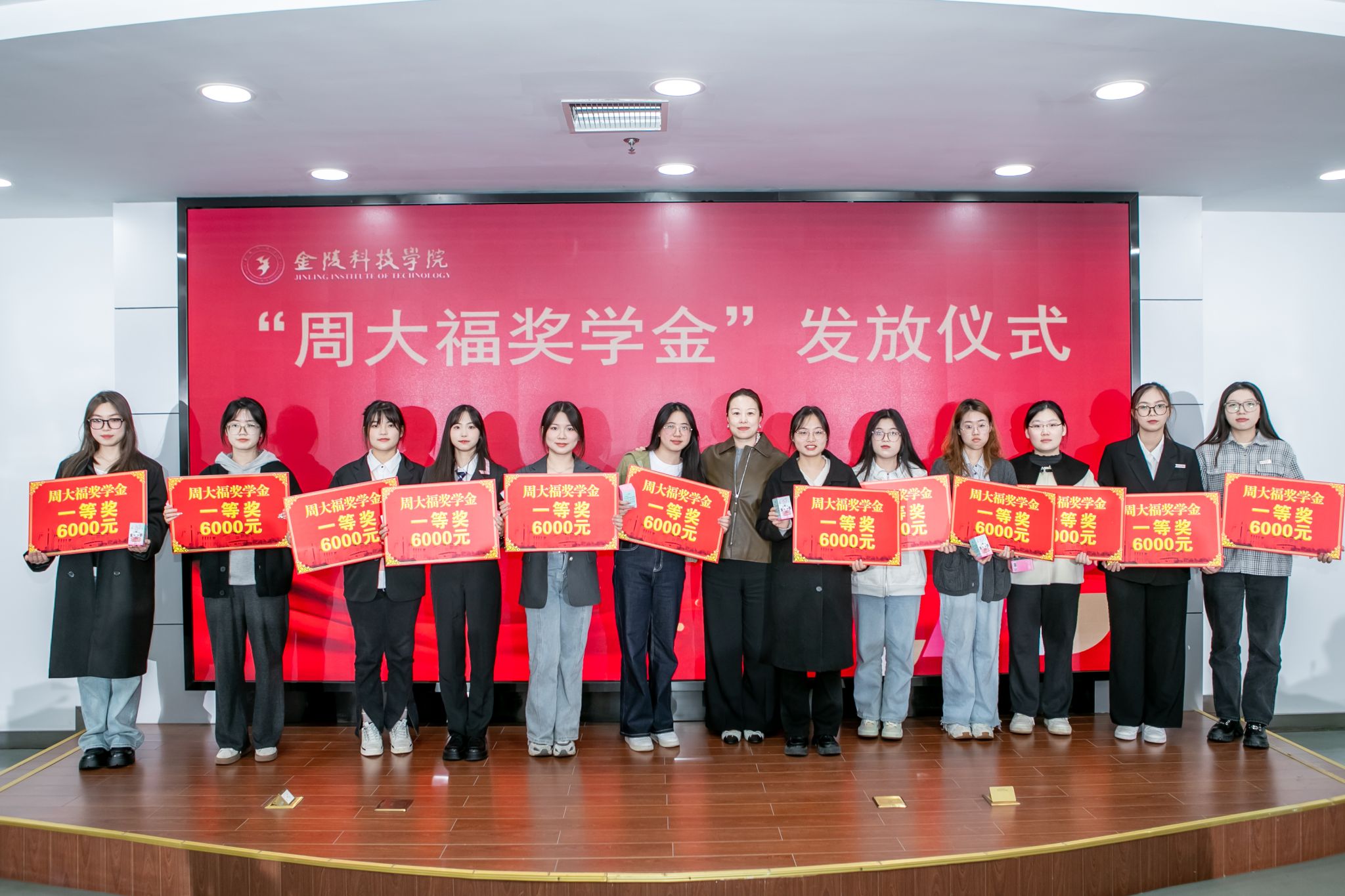 11月10日下午,sjb世俱杯在江宁校区图书馆第一报告厅举行“周大福奖学金”发放仪式。周大福华东区南京地区业务副总经理孙媛、华东区人力资源部高级经理吴钰桦及相关人员,sjb世俱杯副校长高永祥,教育发展基金会、校长办公室、学生工作处、商学院、人文学院、材料工程学院相关负责人和专业教师、40名获奖学生参加活动。仪式由教育发展基金会理事长、校长办公室主任庞海燕主持。