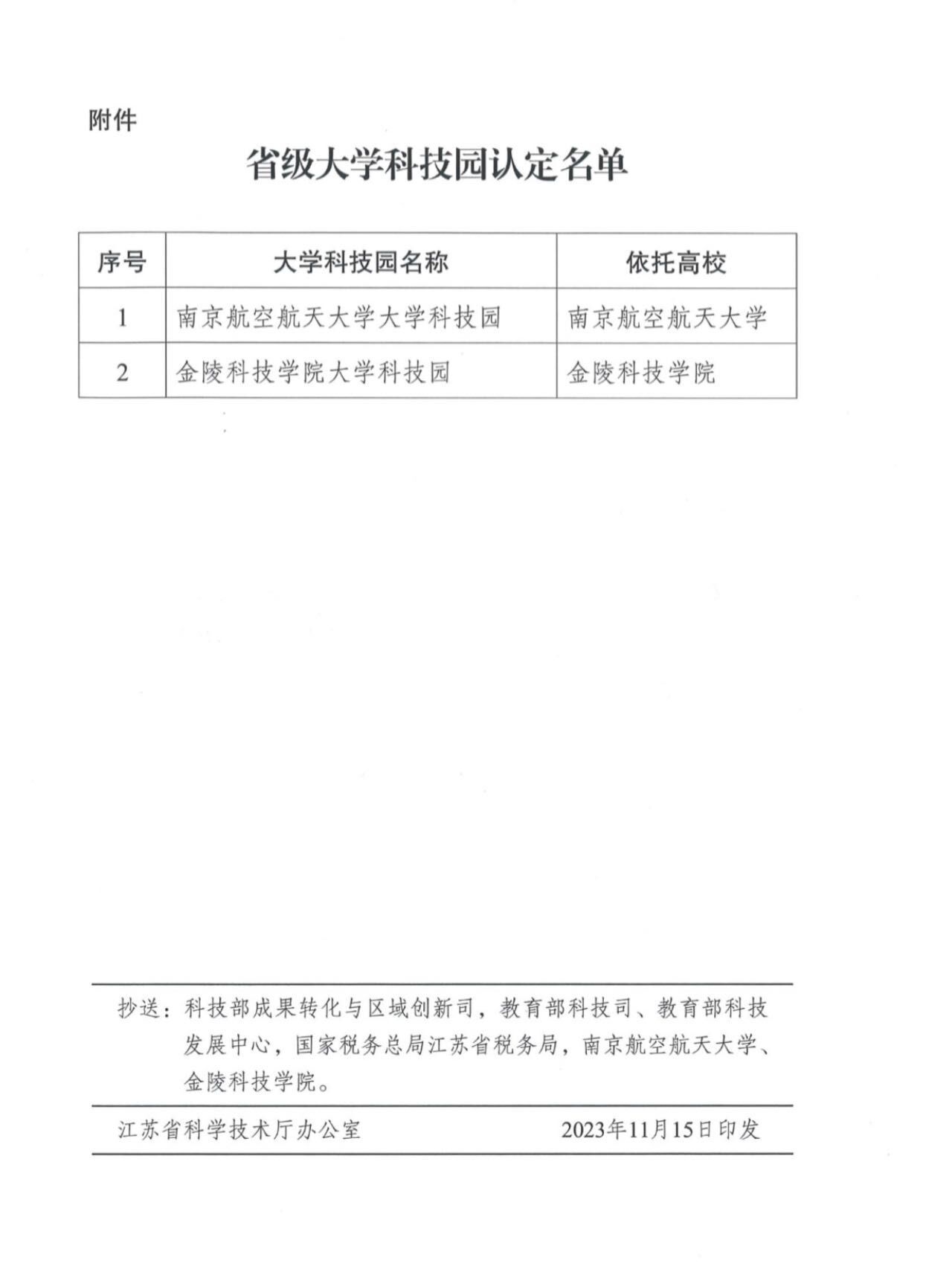 近日,江苏省科学技术厅、江苏省教育厅联合印发《省科技厅省教育厅关于认定南京航空航天大学和sjb世俱杯官方网站大学科技园为省级大学科技园的通知》,经属地(区)审查,市科技局、教育局推荐,现场质询答辩、专家组评审,省科技厅、教育厅审议、公示等环节,认定sjb世俱杯大学科技园为省级大学科技园。