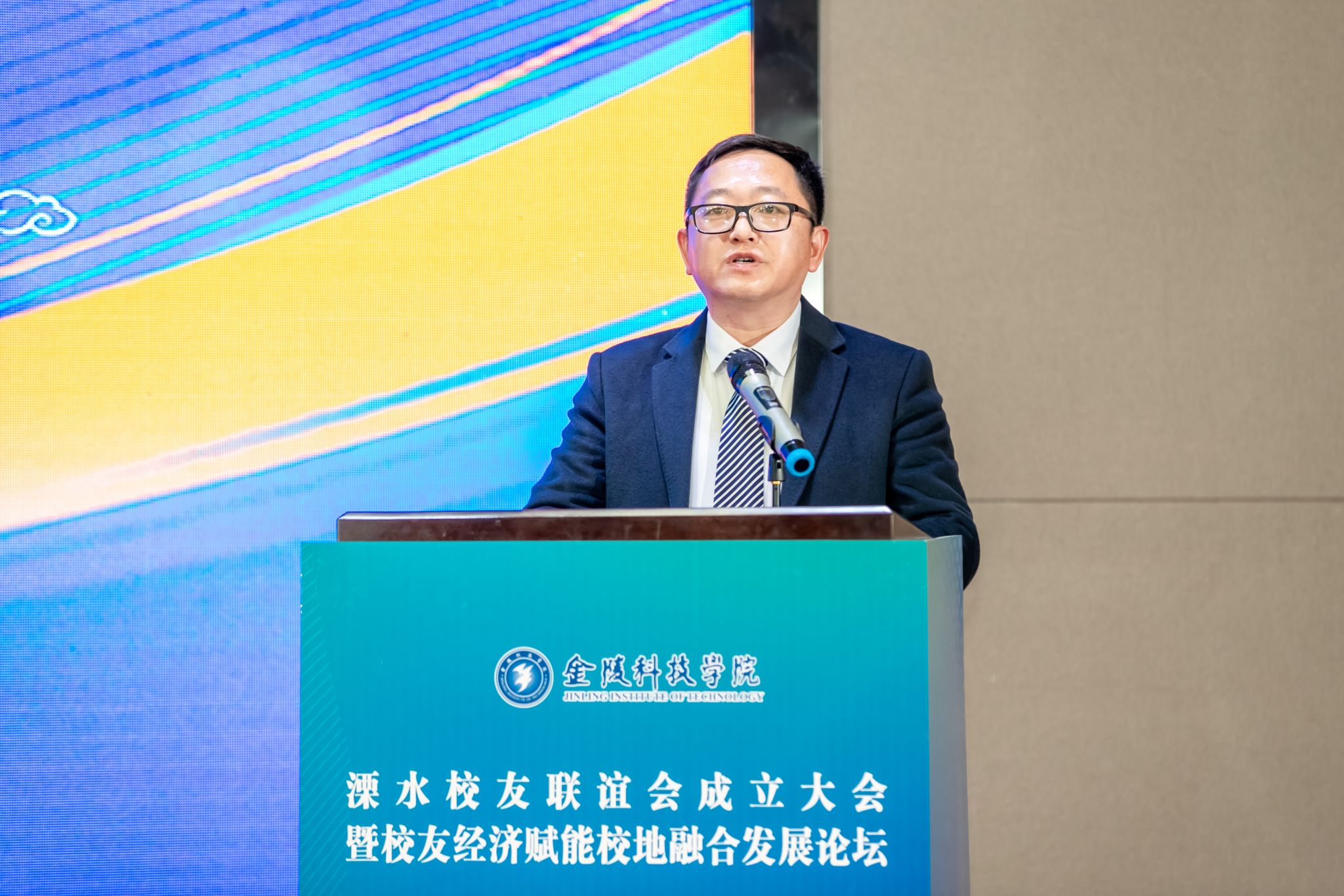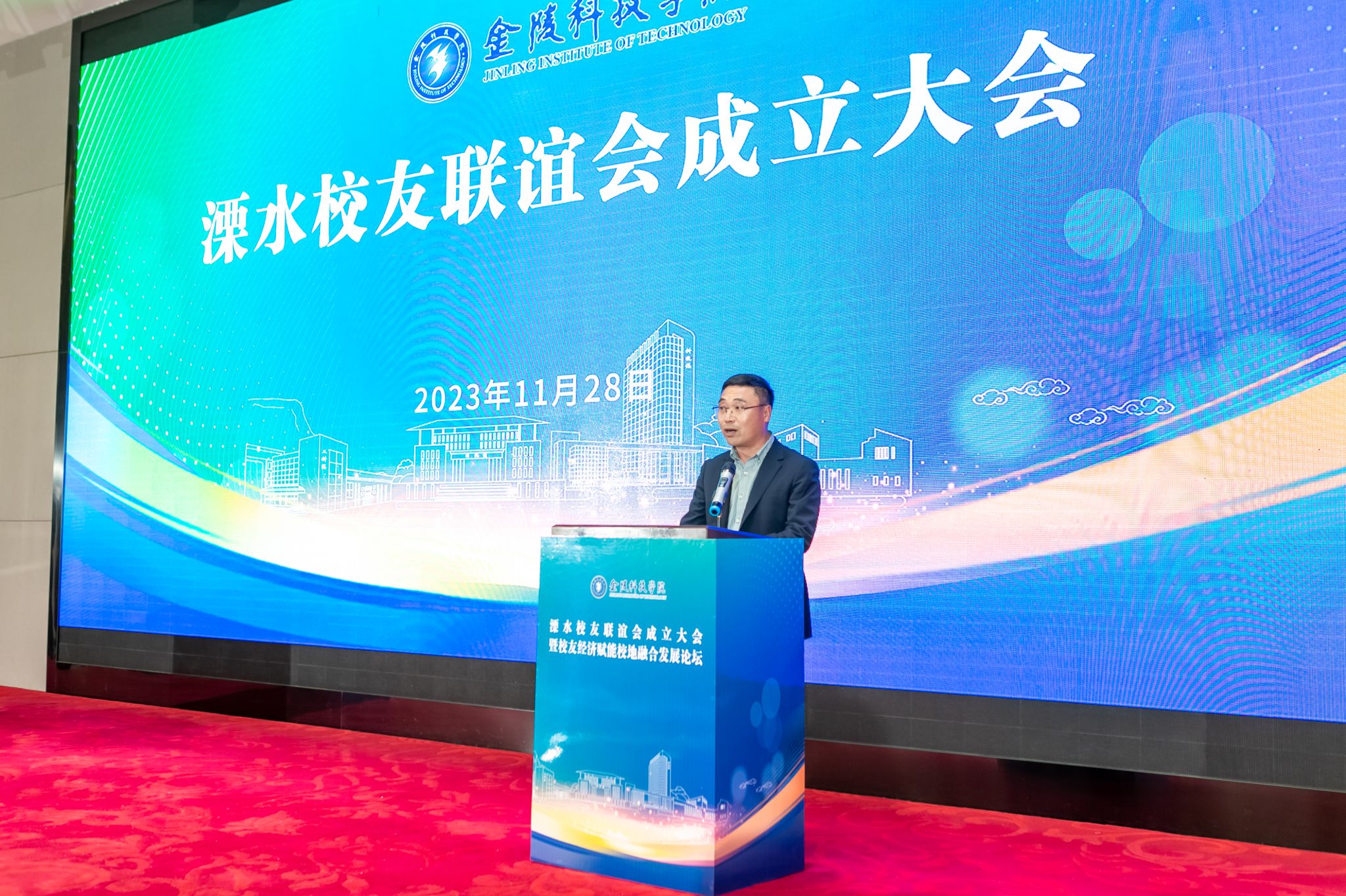 刘永彪在校友联谊会成立大会的讲话中介绍了学校近年来的建设发展情况。他指出,校友是一所学校的宝贵财富,校友们的身影活跃在社会各界,成为地方经济建设和社会发展的中坚力量,并为学校的发展作出了积极贡献。他希望校友联谊会全体人员凝心聚力、开拓进取、守正创新,进一步深化校友、校友企业与母校的沟通联系,在教育教学、科技创新、社会服务、文化交流等方面加强互动、凝聚共识、深化合作,为学校加快推进特色鲜明的高水平新兴应用型大学建设赋能助力,为溧水区经济社会发展贡献更大的力量,为奋力推进中国式现代化南京新实践发挥更大的作用。