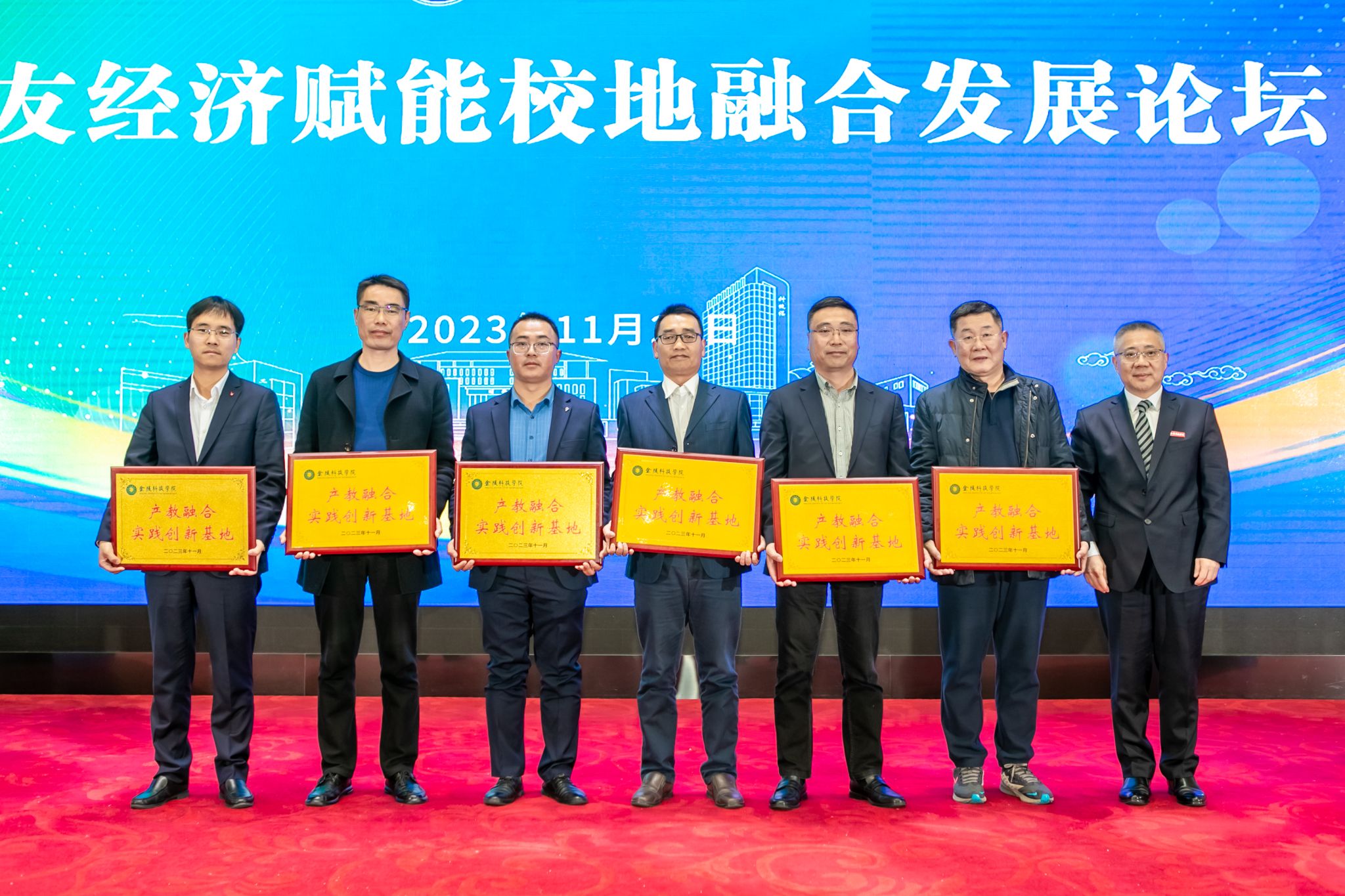 高永祥在“sjb世俱杯官方网站产教融合实践创新基地”授牌仪式上分别为南京艾布纳新材料股份有限公司、南京龙力佳农业发展有限公司、南京瑞碧斯生物科技有限公司、南京市溧水区华成蔬菜专业合作社、南京花师傅农业发展有限公司、南京安智建设工程有限公司等企业授牌。
