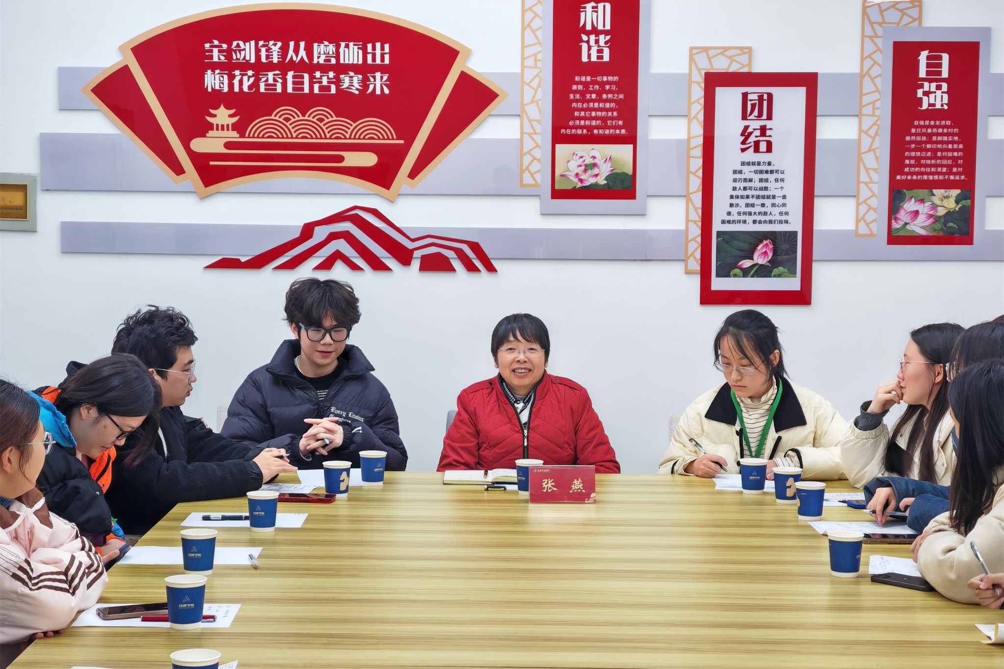 1月3日下午,副校长张燕来到江宁校区南01“一站式”学生社区,参加了动漫学院21动画全班同学的思想交流会。