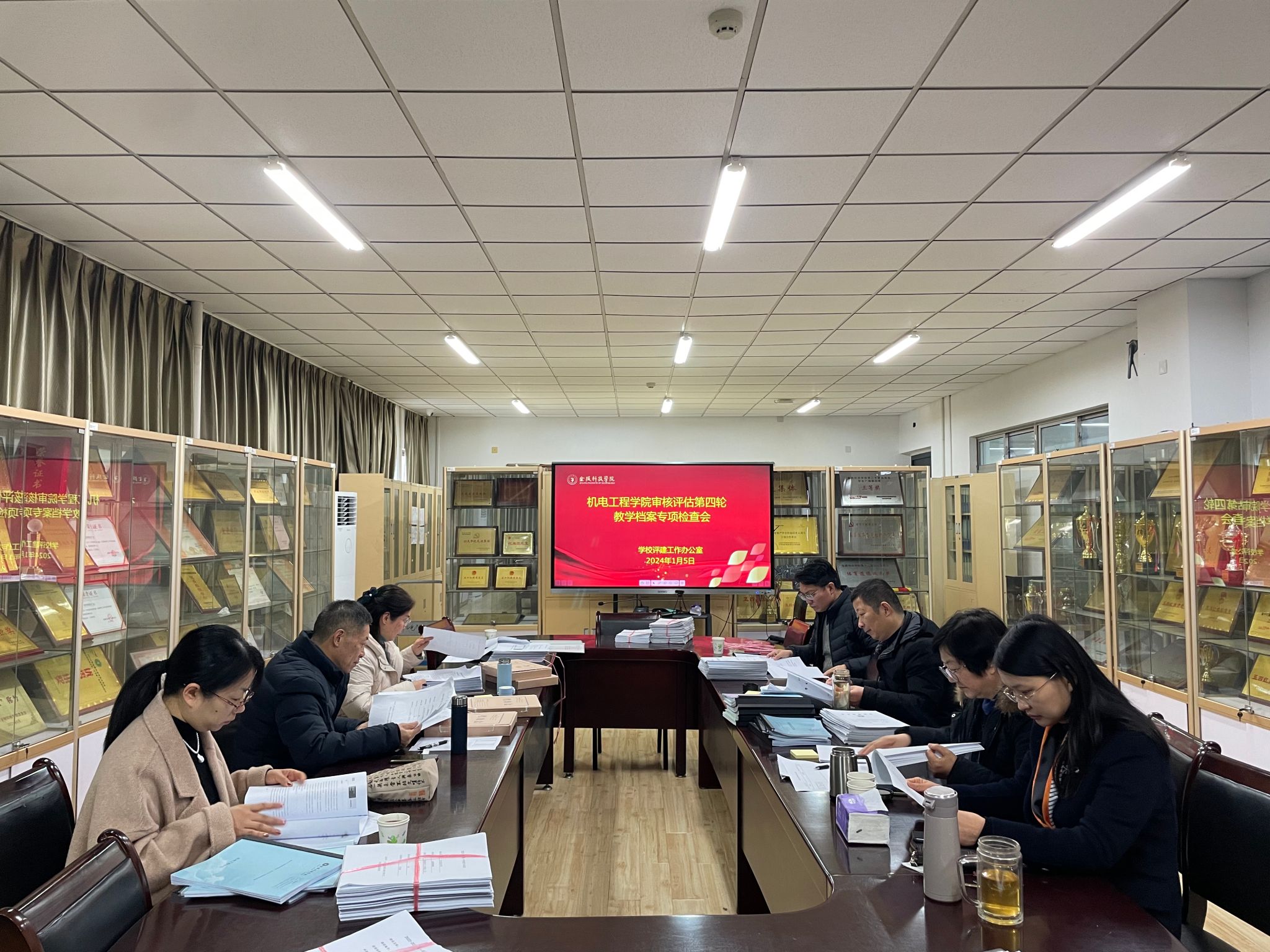 1月4日至5日,学校评建工作办公室组织40名校内评估专家,分五个大组对商学院等17个学院实验实习实践等环节教学档案进行了专项检查。副校长顾晓燕参加专项检查会并讲话。