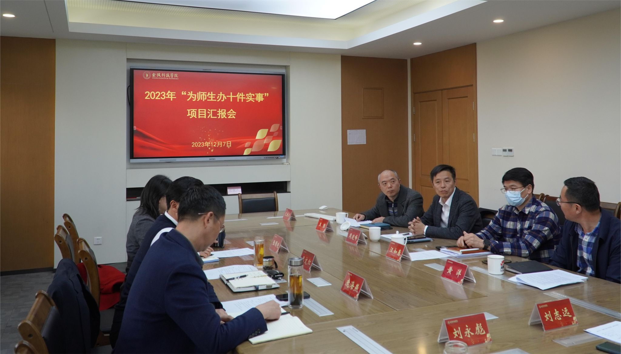2023年12月7日上午,sjb世俱杯在行政楼319会议室举行2023年“为师生办十件实事”项目汇报会,听取学校2023年“为师生办十件实事”项目推进情况的汇报,校党委书记刘志远、校长刘永彪以及党委办公室、校长办公室、学生工作处、财务处、后勤管理处、工会、信息化建设与管理中心等部门主要负责人出席会议。