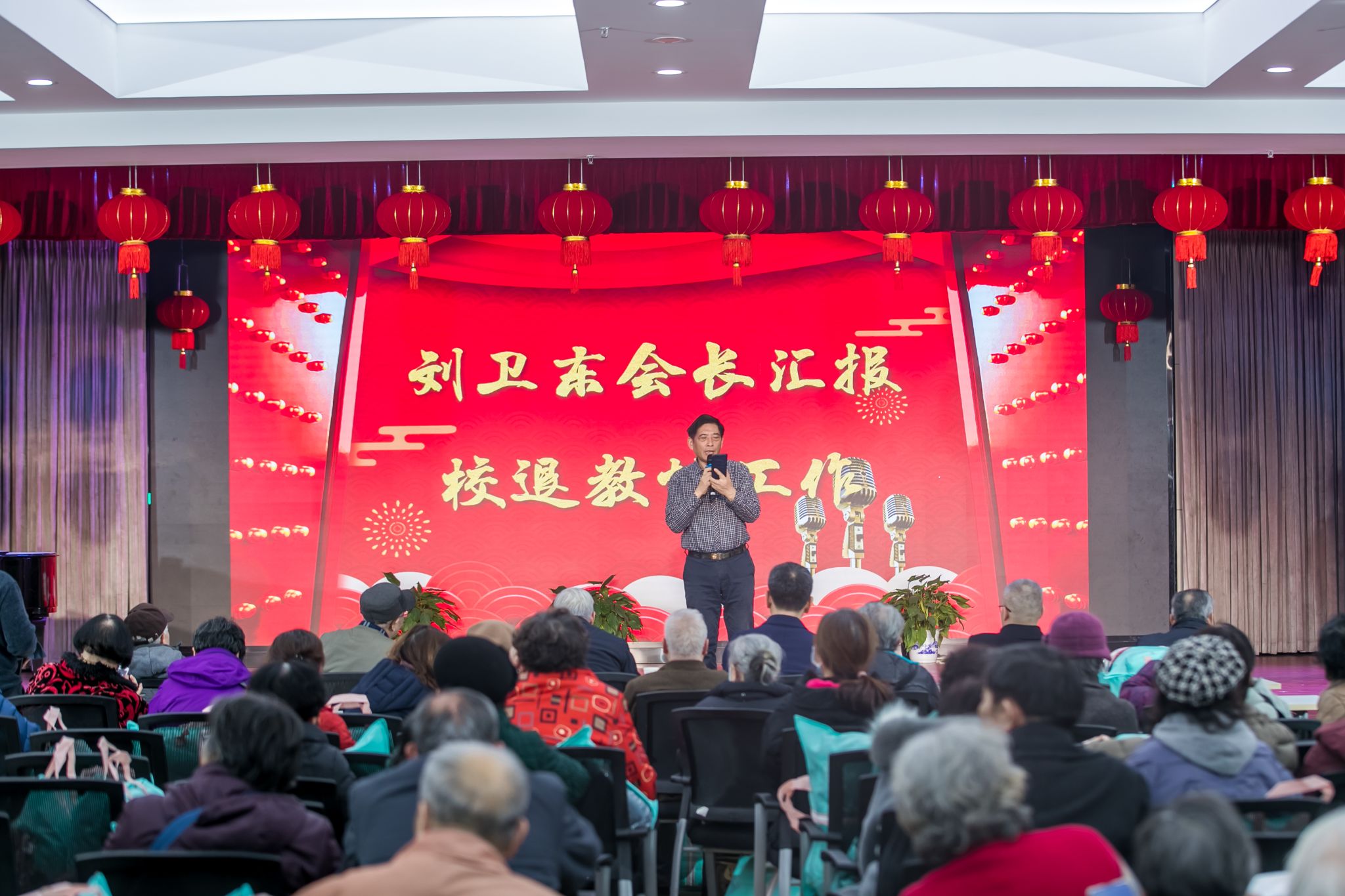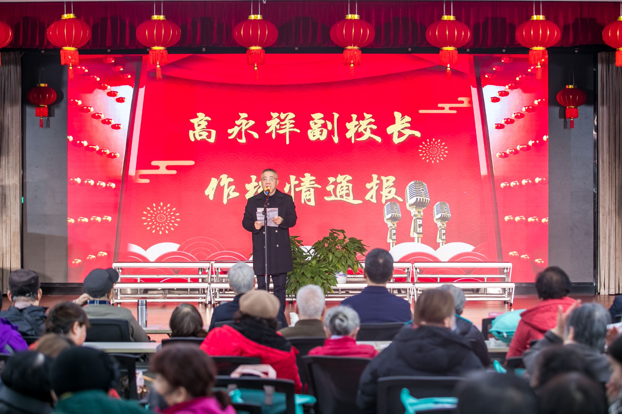 1月18日,学校在金陵老年大学三楼多功能厅举办老同志迎新春联欢会。校党委书记刘志远、副校长高永祥以及党委办公室、离退休工作处主要负责人与离退休老同志们欢聚一堂迎新春。