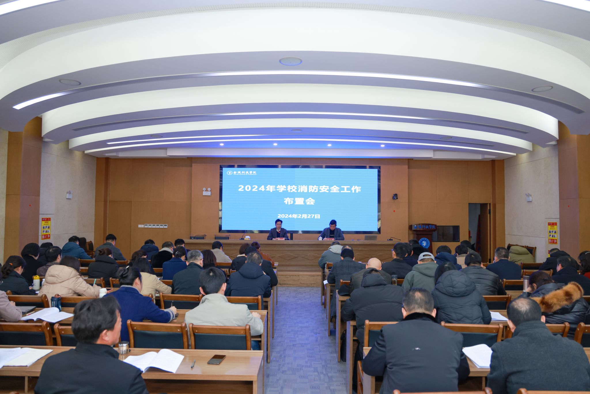 2月27日上午,sjb世俱杯在行政楼报告厅召开2024年消防安全工作布置会。各部门主要负责人,各学院(部)书记、副书记及全体保卫干部参加会议。副校长叶智锐主持会议并讲话。