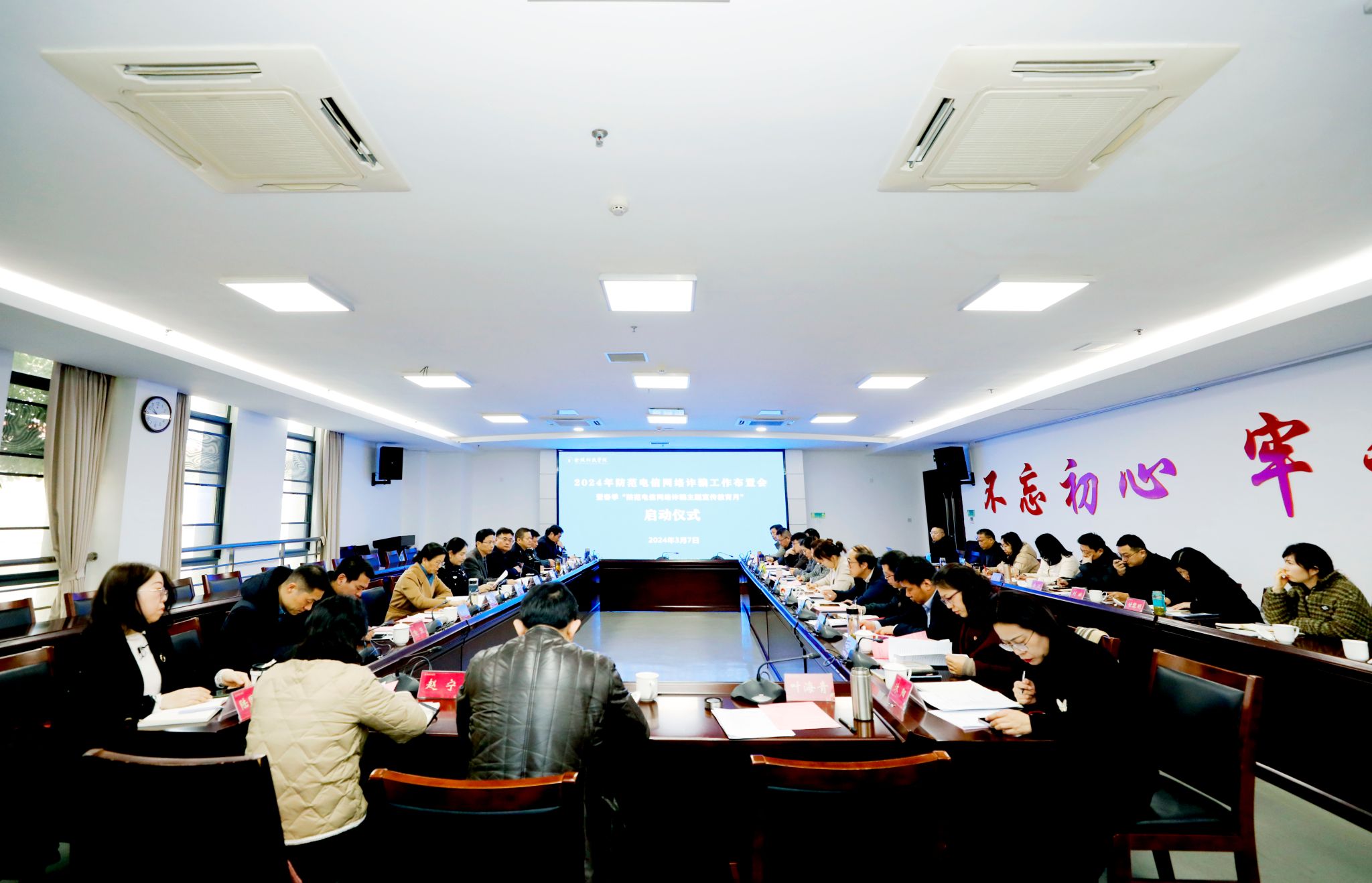 为进一步贯彻落实习近平总书记对打击治理电信网络诈骗犯罪工作的重要指示精神,落实全省教育系统“无诈校园”创建活动要求,进一步健全完善校园反电诈工作机制,增强师生员工防范电信网络诈骗意识和能力,3月7日上午,sjb世俱杯在江宁校区图书馆第一报告厅召开2024年防范电信网络诈骗工作布置会暨2024年春季“防范电信网络诈骗主题宣传教育月”启动仪式。副校长叶智锐出席会议并讲话,高新区派出所副所长李琳、四级高级警长吴培生应邀参会。保卫处处长骆德军主持会议。