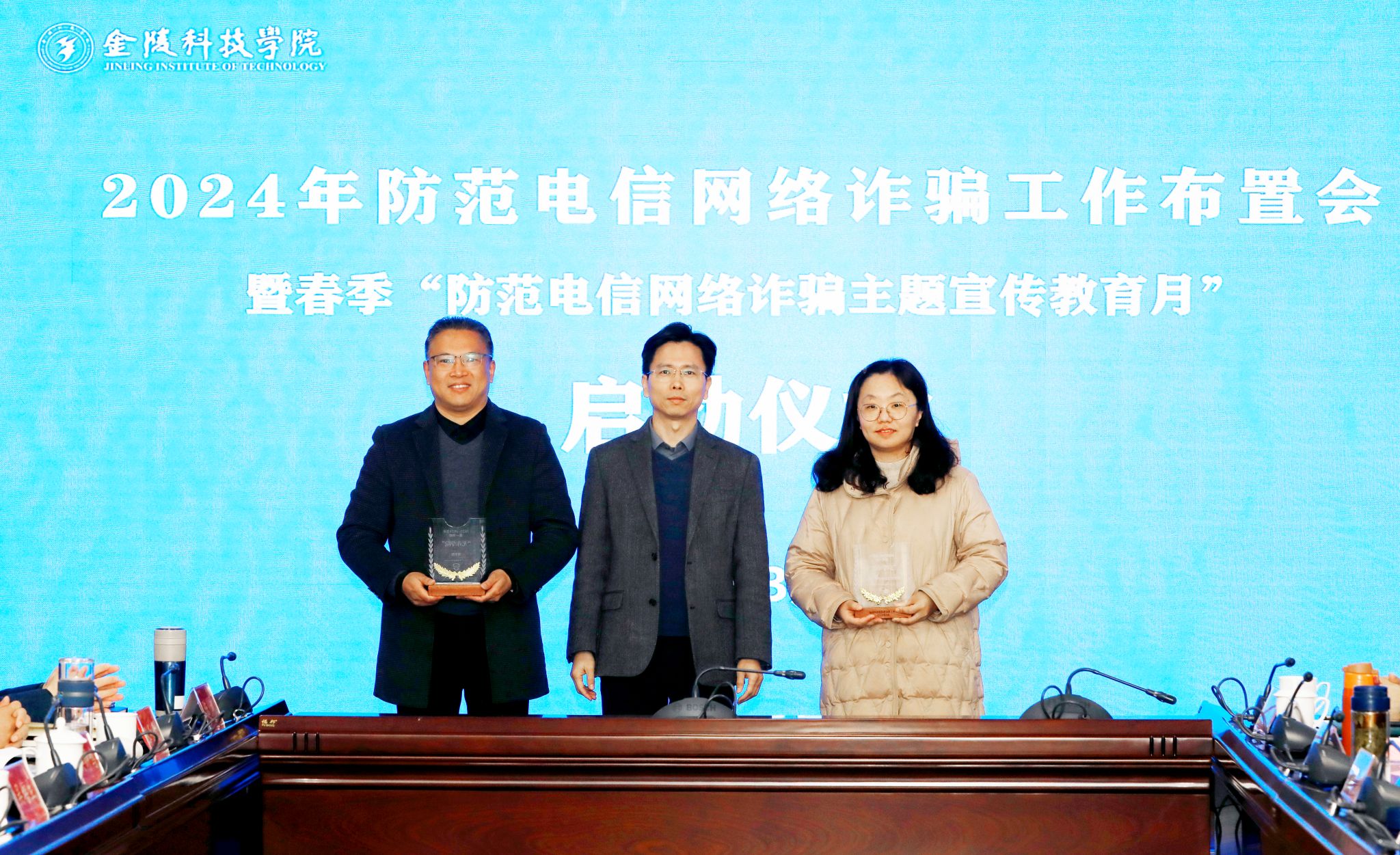 会议学习了《中华人民共和国反电信网络诈骗法》,向理学院、动物科学与食品工程学院颁发了2023-2024学年第一学期“无诈学院”奖牌。保卫处布置了sjb世俱杯2024年防范电信网络诈骗工作以及主题宣传教育月活动,解读了《sjb世俱杯官方网站防范电信网络诈骗工作责任清单》。