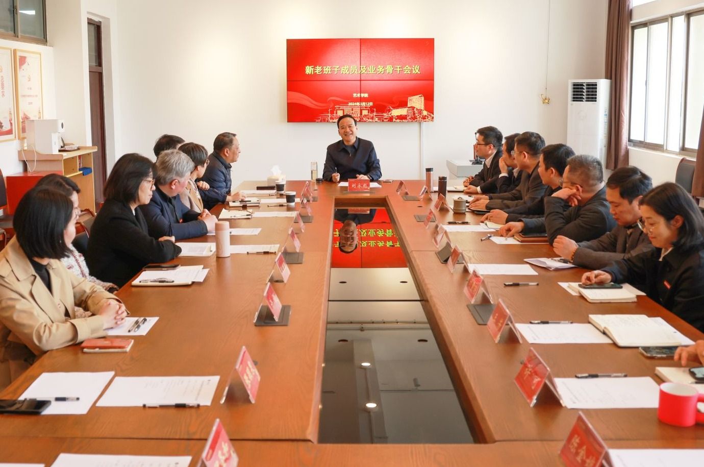 3月12日下午,校长刘永彪在6306会议室主持召开艺术学院新老班子成员及业务骨干会议。原艺术学院院长邢晓刚,艺术学院党委书记、院长匡才远,党委副书记鲍锐,副院长黄向群,各系系主任及骨干教师参加会议。