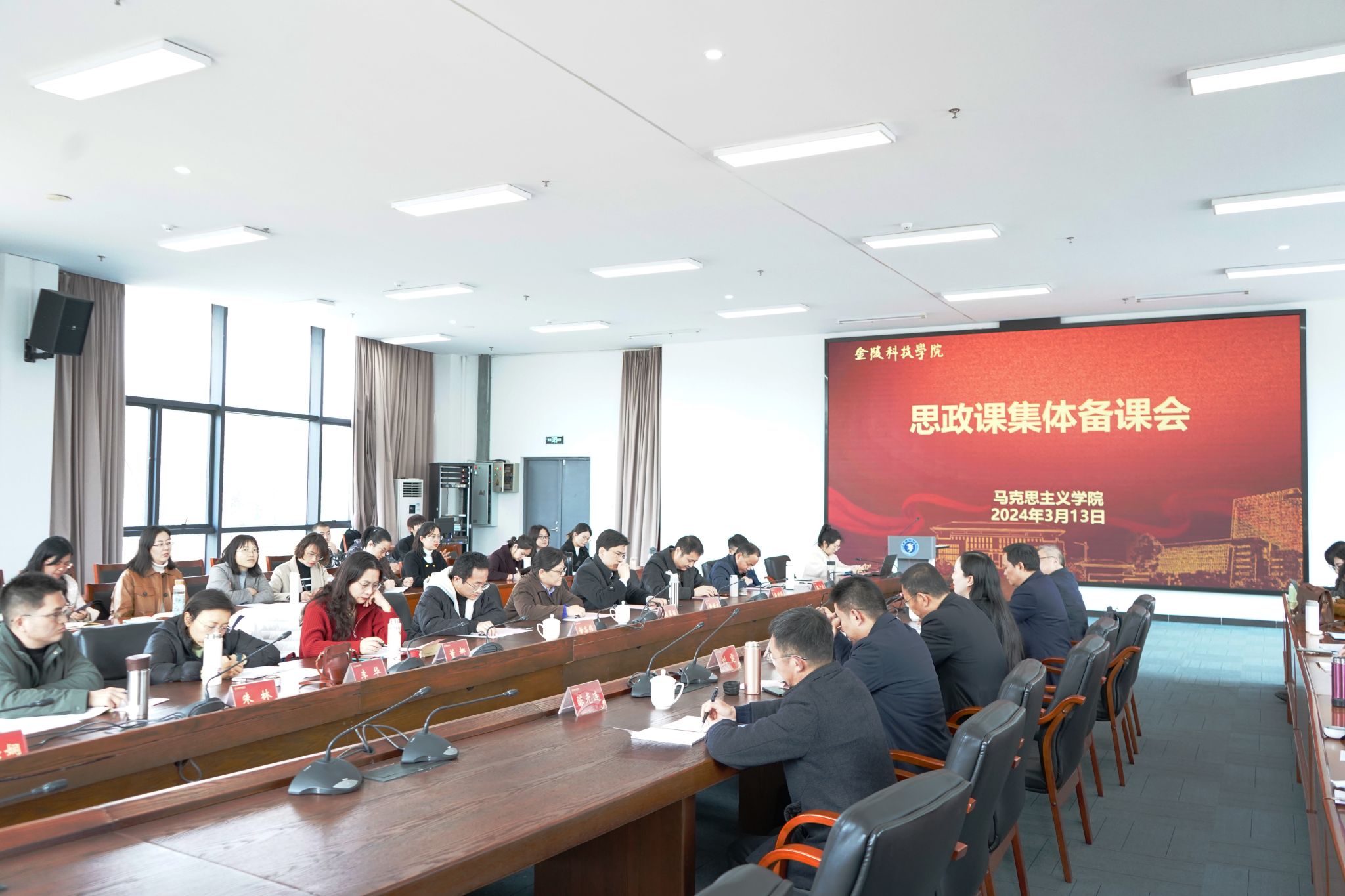 3月13日下午,sjb世俱杯召开思政课集体备课会。南京大学马克思主义学院副院长吴翠丽教授、河海大学马克思主义学院党委书记黄世虎教授、中国药科大学马克思主义学院副院长董高伟教授、南京工程学院马克思主义学院赵利群副教授应邀参会。副校长顾晓燕、教务处处长田祥宏、马克思主义学院党政领导及全体教师参加会议。会议由马克思主义学院副院长葛维东主持。