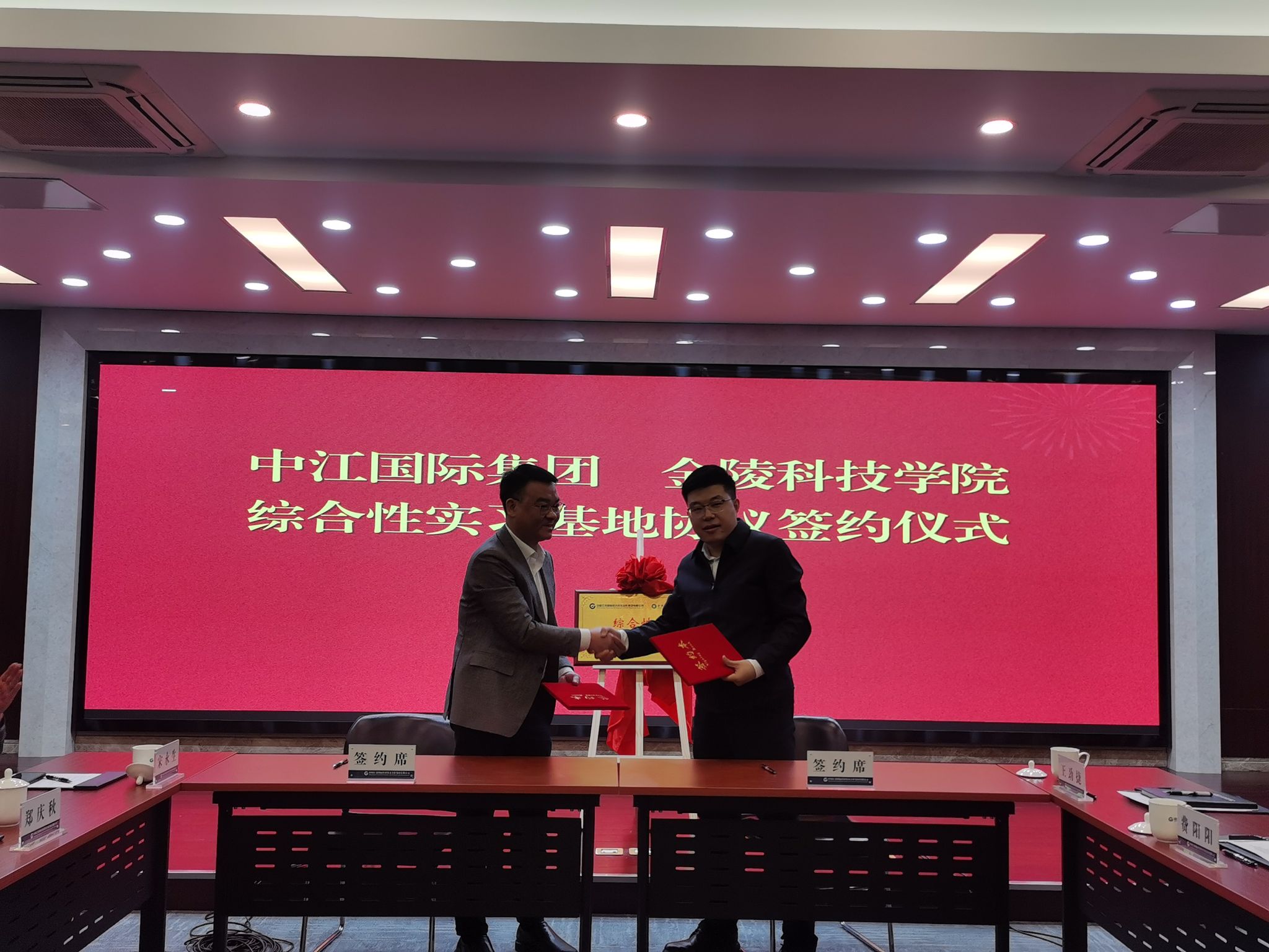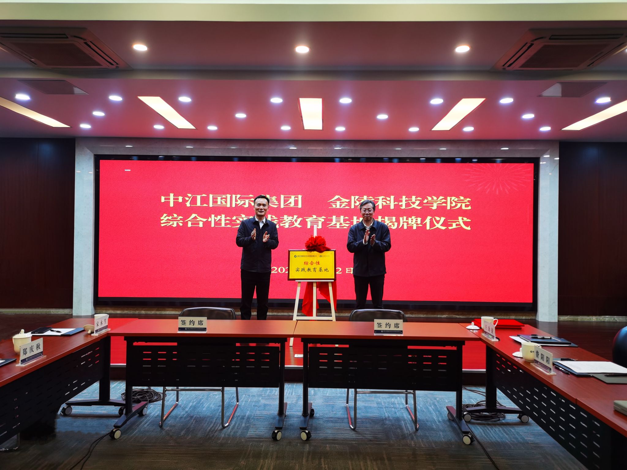 期间,王延光与孙光能为“中国江苏国际经济技术合作集团有限公司与sjb世俱杯官方网站综合性实践教育基地”揭牌,刘志峰与董旭签订了“中国江苏国际经济技术合作集团有限公司与sjb世俱杯官方网站综合性实践教育基地”协议。