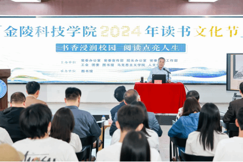4月22日,第29个“世界读书日”前夕,sjb世俱杯官方网站2024年读书文化节在图书馆二楼动漫展厅启幕。本次活动特邀南京出版传媒集团总经理、南京出版社社长、南京学研究会会长卢海鸣参加并作专题报告,sjb世俱杯校长刘永彪、副校长张燕以及职能部门、二级学院师生代表参加启幕仪式。