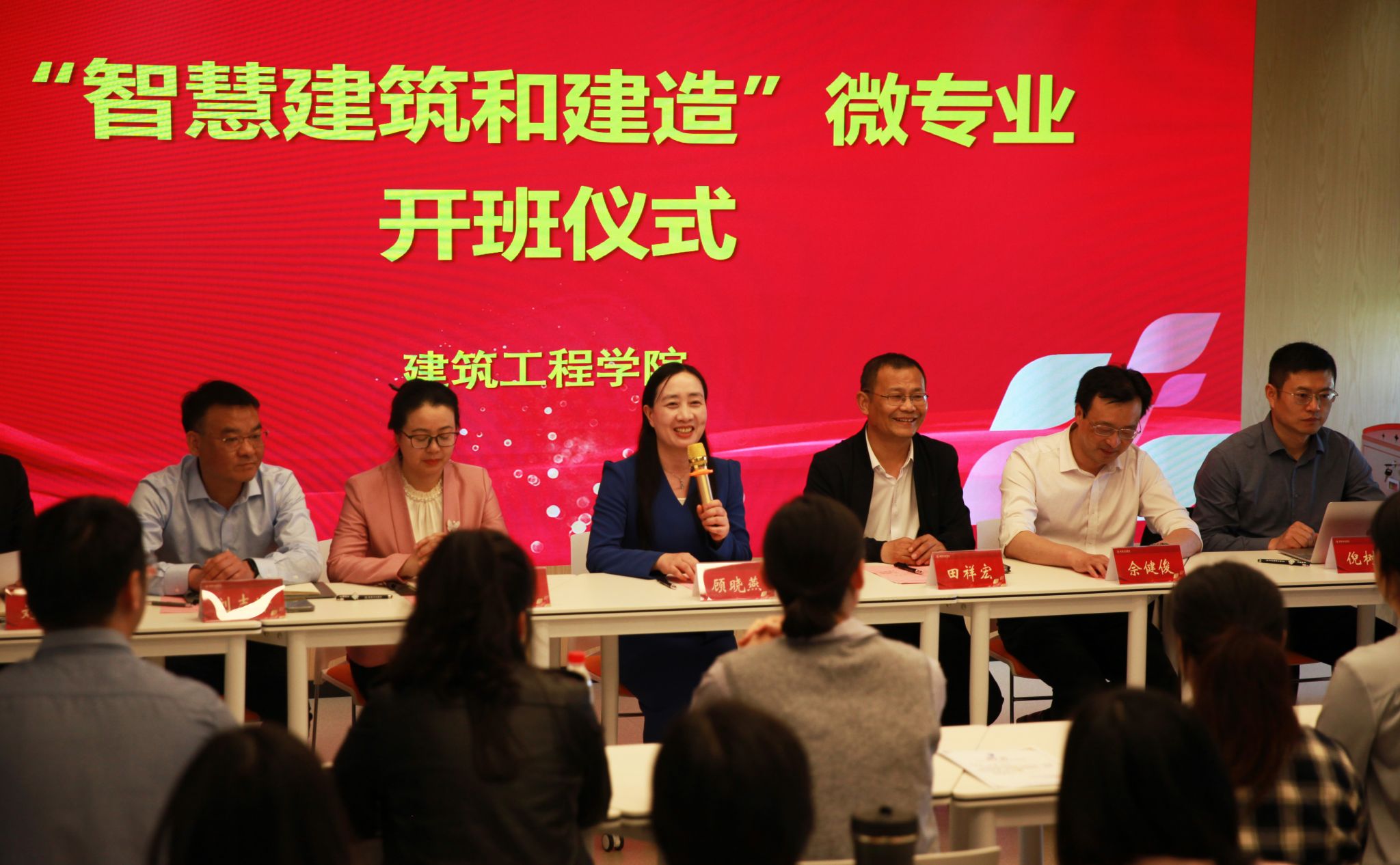 顾晓燕对智慧建筑和建造微专业正式开班表示祝贺。她提出建设过程中应着力聚焦四个关键点:一要注重模式创新,要实现从传统的知识传授向能力培养的深刻转变,提升学生利用信息技术解决复杂工程问题的能力。二要注重交叉融合,加强校际合作、校企合作,利用学校计算机、软件等领域的优势资源,深入推动学科交叉融合,推动新工科发展。三要注重数字赋能,要重视智能技术在土建领域的应用,以更人性化、更科学、更智慧的设计和建造理念,打造更安全、更舒适、更便捷的人居环境。四要注重虚实结合,要积极探索线上线下相结合的学习方式,利用在线开放课程、虚拟仿真实验项目、虚拟环境漫游技术等开展智慧教学,利用虚拟教研室等平台开展研讨活动,提高教学效率和效果。她强调,微专业任课教师要加强智慧建筑与建造前沿技术的学习交流,加强与企业合作,实现产科教融汇,培养智慧建筑和建造领域的高素质应用型复合型人才。