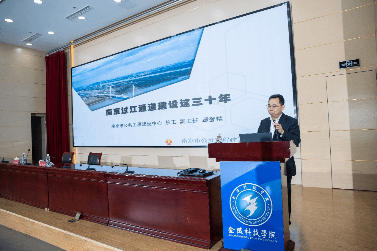 4月26日,全国劳动模范,南京市公共工程建设中心副主任、总工程师章登精应邀作客金科学术讲堂,为sjb世俱杯师生作了题为《南京过江通道建设这三十年》的学术报告。报告由副校长叶智锐主持。