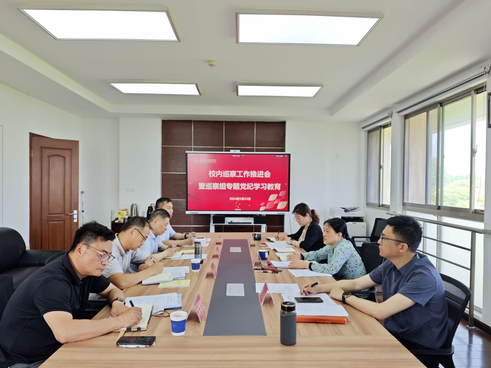 5月23日上午,校党委巡察办召开校内巡察工作推进会,深入开展党纪专题学习,分析研判阶段性任务完成情况,推动校内巡察工作走深走实。纪委书记、校巡察工作领导小组常务副组长王靖华主持会议。第二轮校内巡察组副组长、巡察办全体成员参加会议。