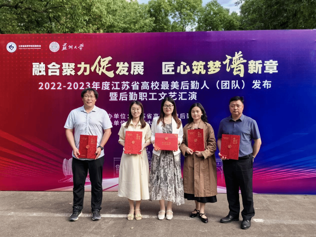 6月2日,以“融合聚力促发展,匠心筑梦谱新篇”为主题的2022-2023年度江苏省高校最美后勤人(团队)发布暨后勤职工文艺汇演在苏州举行,此次活动由江苏省高等学校后勤协会主办,旨在表彰先进、树立榜样,促进后勤职工间文化交流。