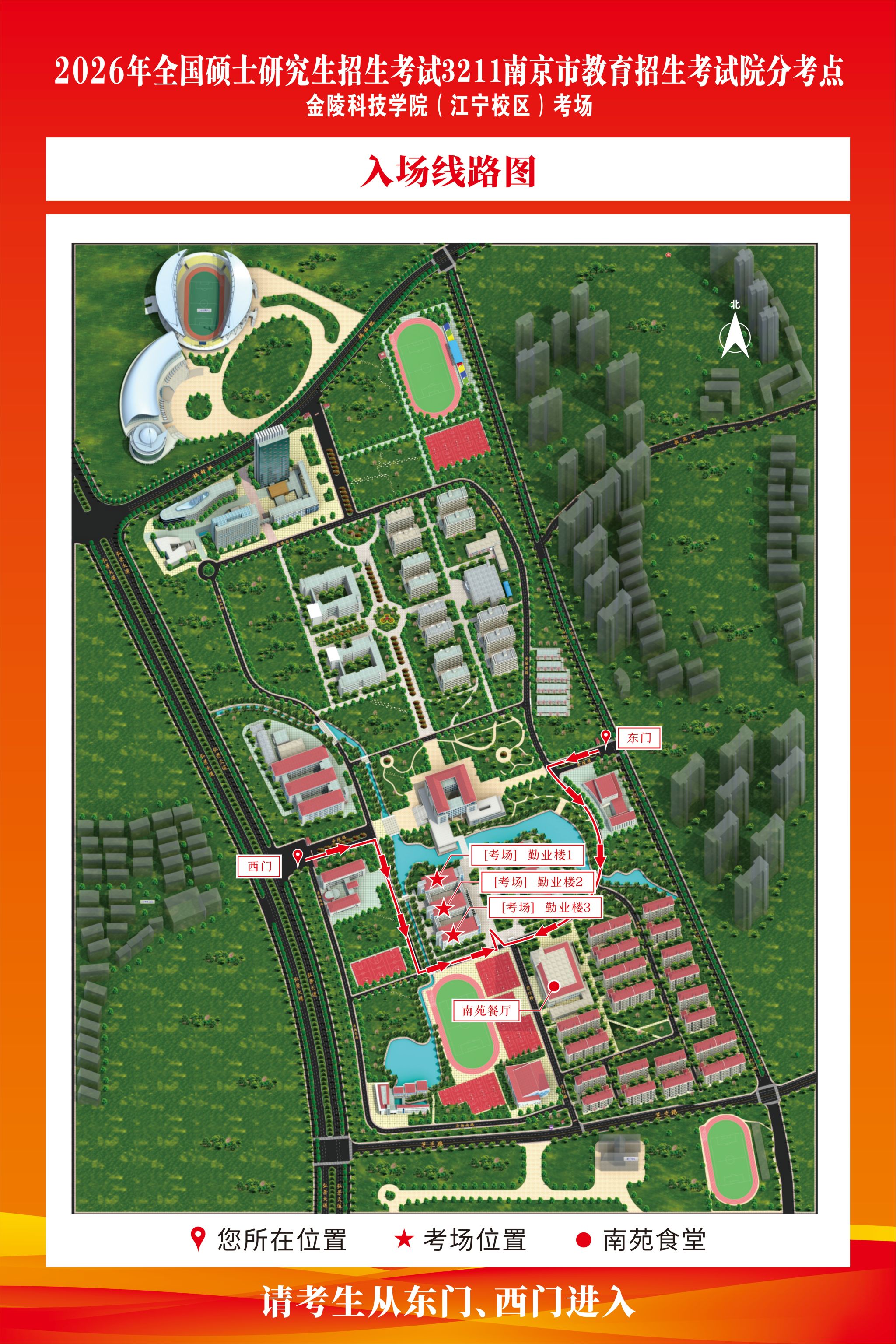 校内考点区域实行封闭管理,考生须通过校门初检(东门、西门)进入、考区智能安检门安检后方可进入考试封闭区域。非本校在读的考生凭准考证和有效身份证件进出校园。(入场线路图、考场分布图及考场安排索引表分别见附件1、2、3)