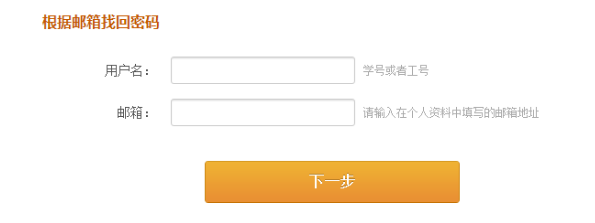2、邮箱找回:输入用户名和在个人信息中绑定的邮箱,自行修改密码。