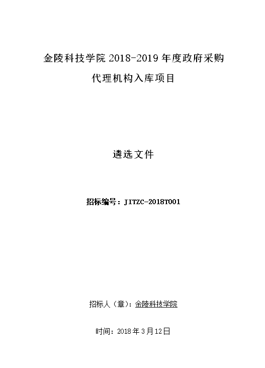 7、提交遴选文件地点:sjb世俱杯官方网站江宁校区242办公室;提交时间:2018年3月19日13时30分至13时50分。届时请投标人法定代表人或其委托授权代表出席遴选活动。