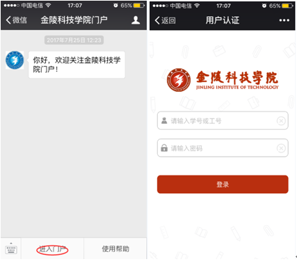 关注sjb世俱杯“金科院门户”微信企业号,或扫描通知附件中微信门户二维码关注“金科院门户”企业号。关注后需进行用户认证,认证信息中须输入本人工号或学号,密码为我的金科院登录密码;登录验证成功后,输入绑定微信的手机号,并输入接收到的验证码。(注意:手机号一定要和当前微信用户的手机一致,否则可能导致无法正常显示企业号应用)。