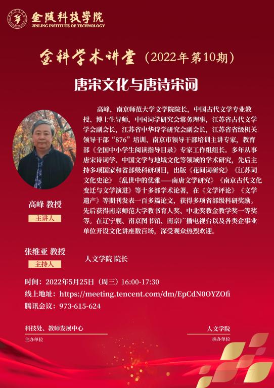 关于举办线上“金科学术讲堂——唐宋文化与唐宋诗词“学术报告的通知