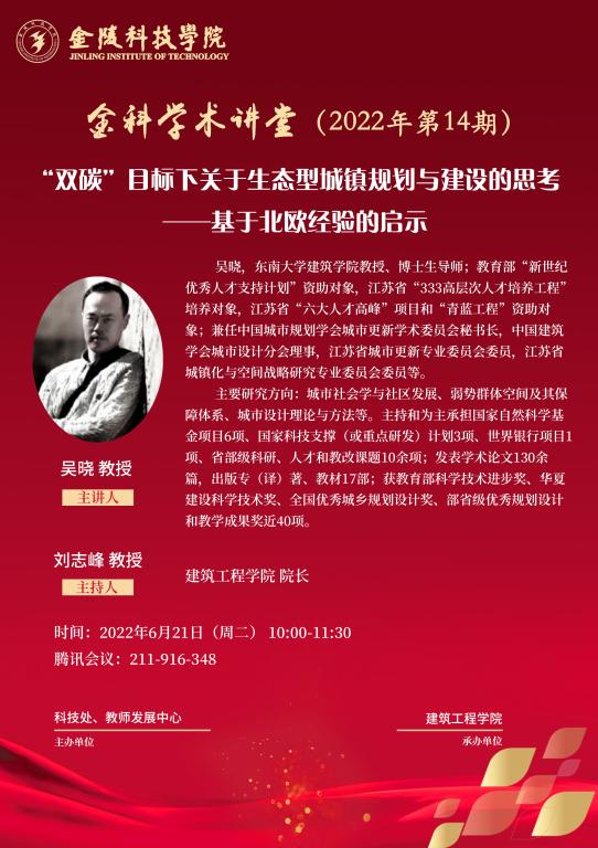 关于举办线上“金科学术讲堂—‘双碳’目标下关于生态型城镇规划与建设的思考—基于北欧经验的启示”学术报告的通知
