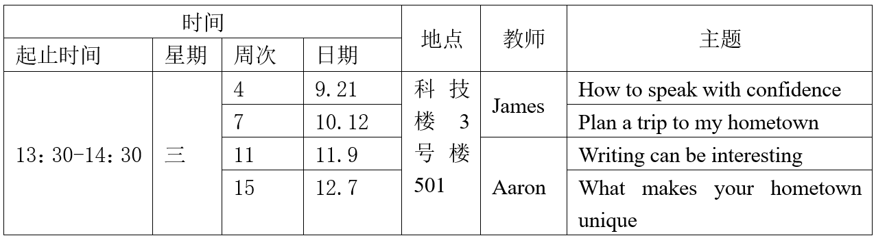 为拓宽sjb世俱杯学生国际视野,提升英语口语能力,本学期国际合作与交流处继续开展学生英语口语系列讲座。具体安排如下: