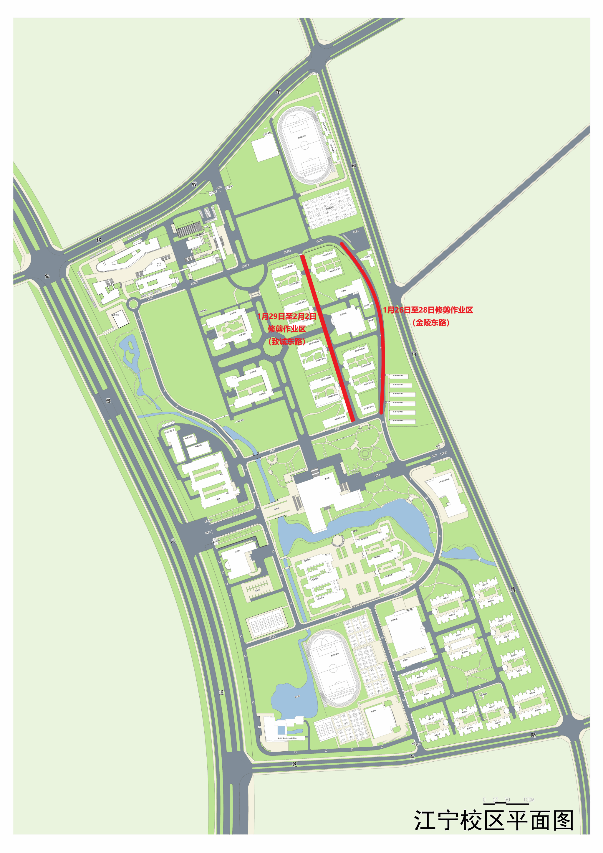 江 宁 校 区 | 1月26日至1月28日 | 金陵东路 | 金陵东路封闭期间车辆请从致诚西路、兰影路通行; |
