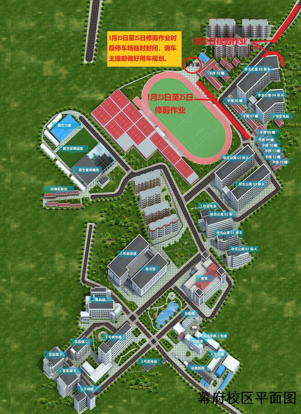 请各位教职工、住户提前应对,提前一天将车辆驶离上述修剪区域,途经施工现场时请绕道通行,并听从现场工作人员指引,以免发生危险。
