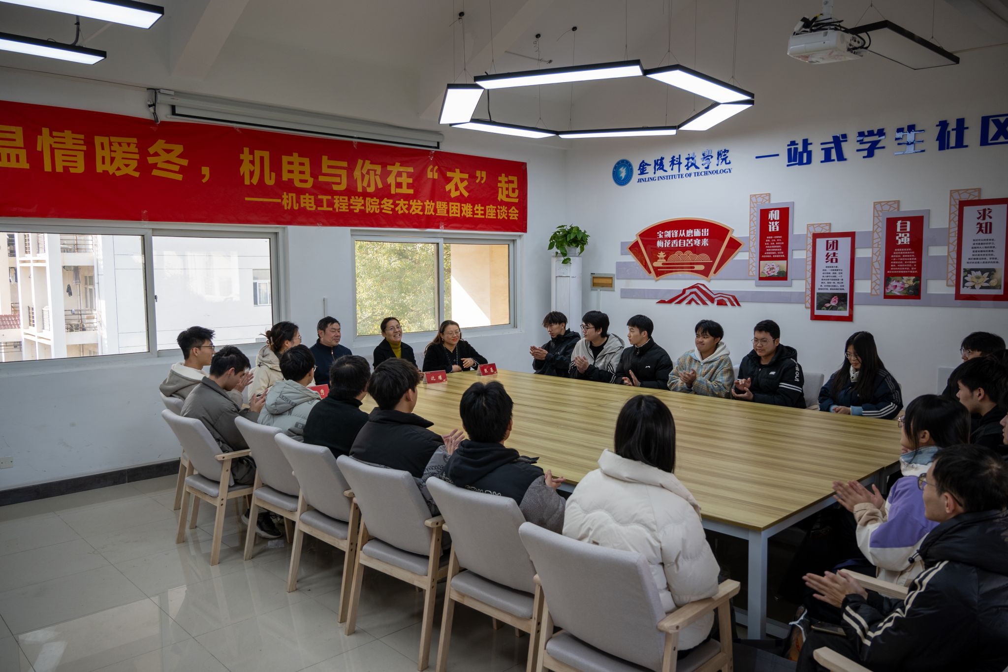 12月18日,机电工程学院在南01一站式学生社区举行了2024年爱心冬衣发放活动暨家庭经济困难学生座谈会。学院党委书记沈瑾、副书记张蓉、副院长于继明出席本次活动,杨秀老师主持会议,全体受助学生参加。