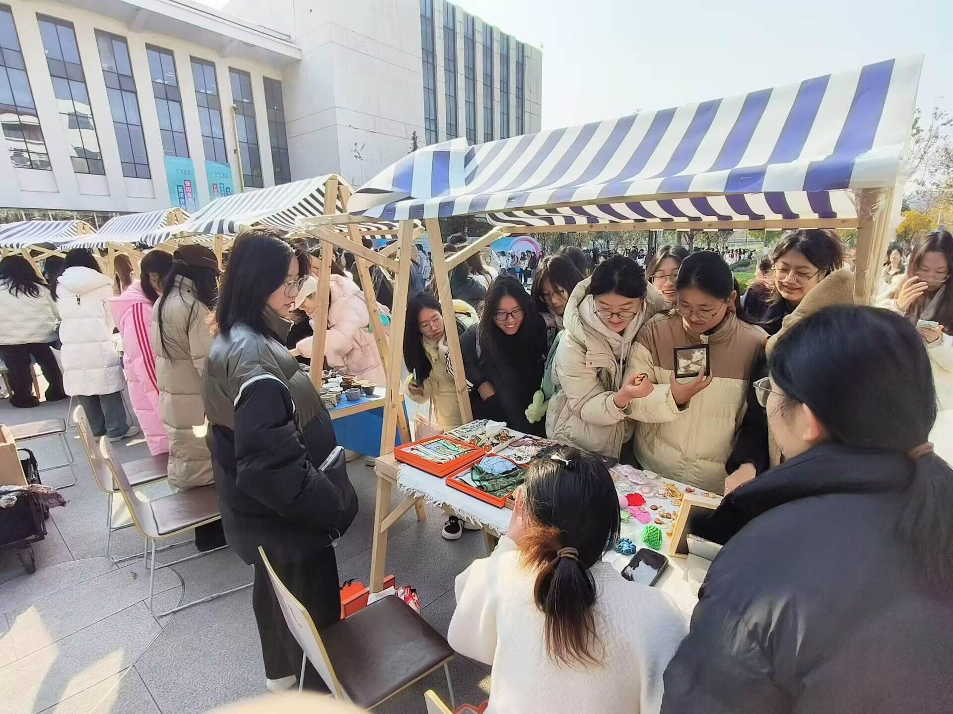 2024年12月18日,由艺术学院主办的创意集市活动于江宁校区南区食堂门口举行。文创手作、动漫衍生、艺术家居、生活美育等有趣有爱的创意作品琳琅满目、目不暇接,在寒冷冬日为校园生活注入融融暖意,师生们在课余闲暇时欣然奔赴这场心灵与趣味交织的冬日之约。