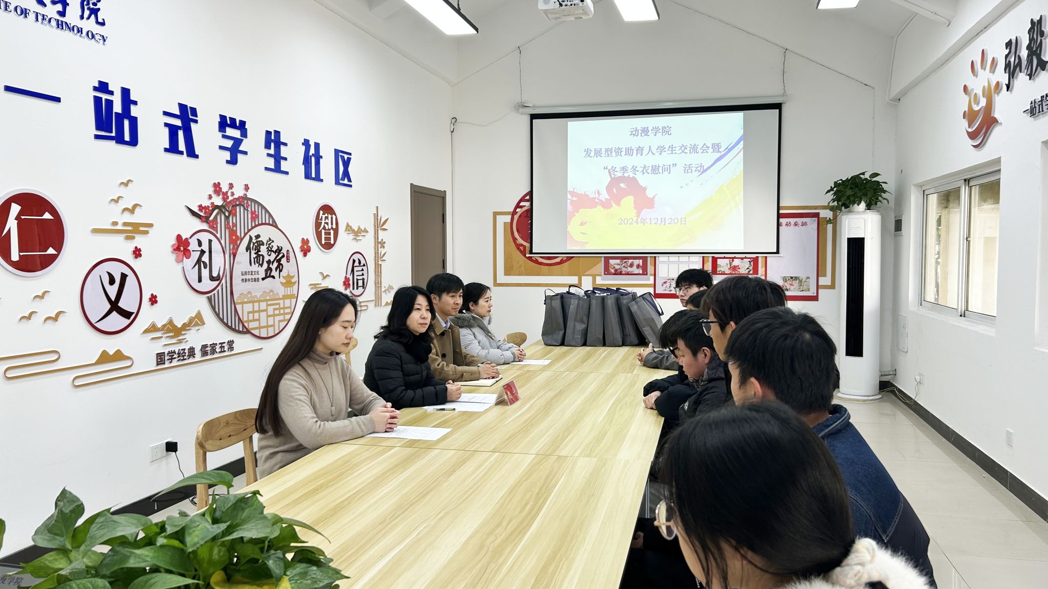 为了进一步深化学校发展型资助育人工作,创建温馨的校园文化环境,保障家庭经济困难学生成长成才,动漫学院于12月20日中午在南区05栋一站式学生社区举办发展型资助育人学生交流会暨“冬季冬衣慰问”活动。学院党总支部书记赵宁,辅导员聂钰石、王月恒和殷子妍,以及家庭经济困难学生代表参加了活动。