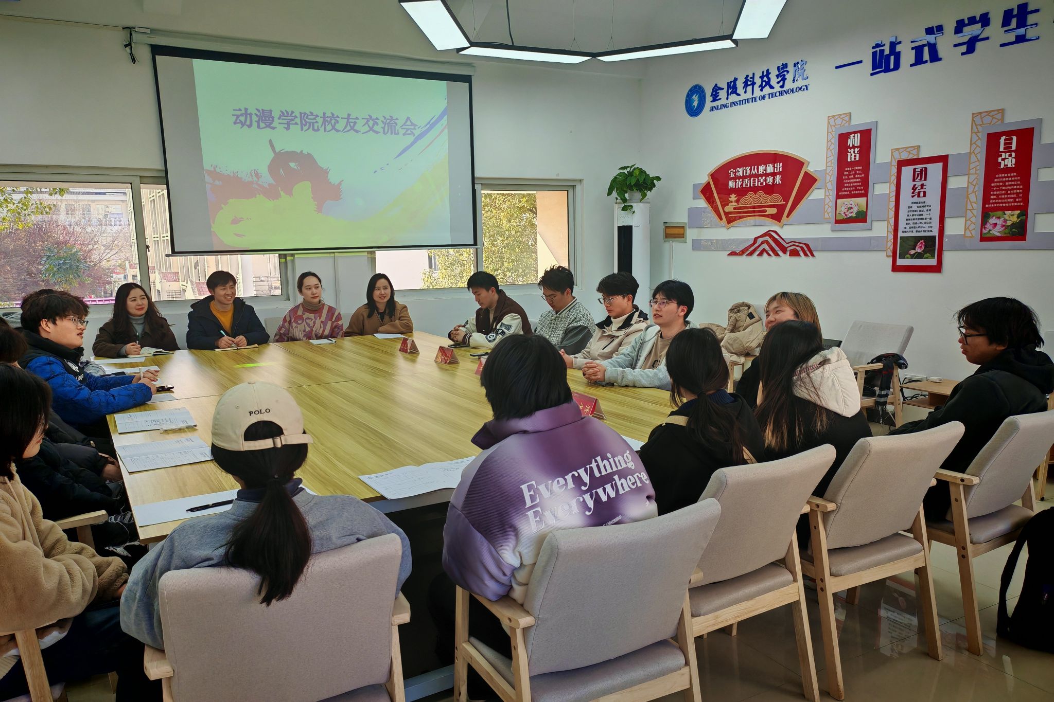 为激发学生创新创业热情,并为即将步入职场的毕业生提供就业指导,动漫学院校友会在南区01栋一站式学生社区,举办了校友就业创业经验交流会。动漫学院校友会秘书长王树军,监事冯园缘,副秘书长刘宇洋,理事周峰,优秀校友杨天笑、陈山山,学院全体辅导员老师,2025届毕业生代表及各班学生代表参加了活动。