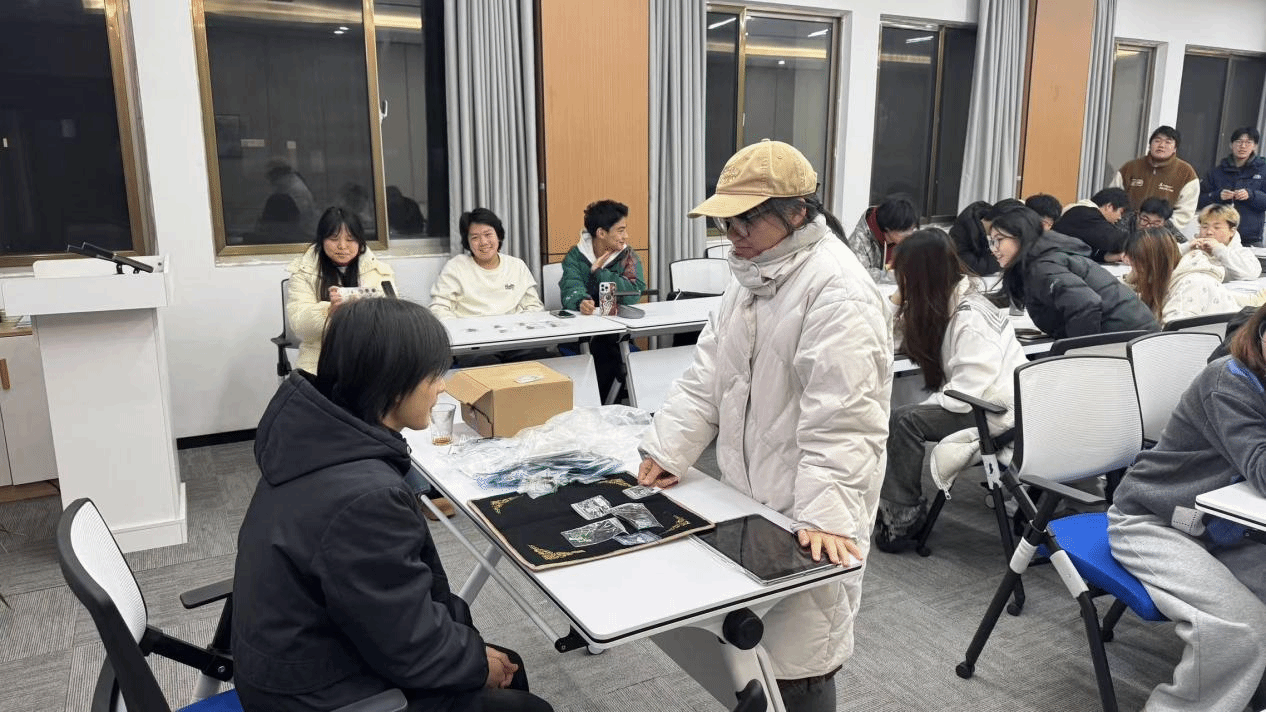 活动现场气氛轻松活泼,蔡老师别出心裁特别设计了一个沉浸式模拟翡翠交易环节,让同学们仿佛置身于真实的交易场景中。通过模拟交易,大家不仅体验了翡翠交易的实际流程,还深入了解了如何评估翡翠的价格和鉴别其品质。蔡老师与现场同学们积极互动,耐心解答了大家在交易过程中的疑问,使大家对翡翠市场有了更加直观且深入的理解。