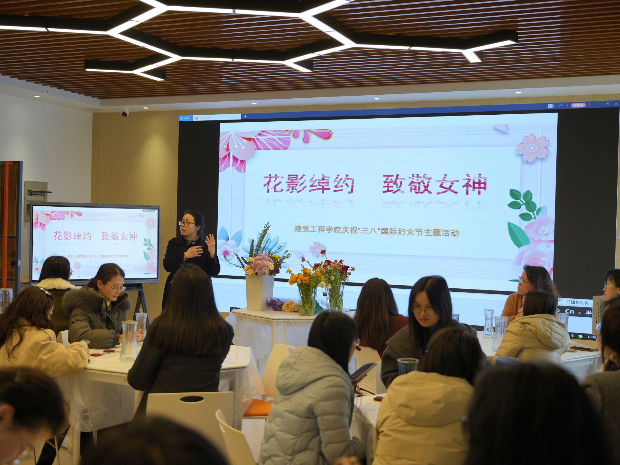 春意盎然,花香四溢。为庆祝第115个“三八”国际劳动妇女节,丰富学院女教职工的精神文化生活,3月5日中午,建筑工程学院分工会在知行楼B409举办了以“花影绰约 致敬女神”为主题的鲜花插花活动,学院女教师欢聚一堂,共度美好节日。