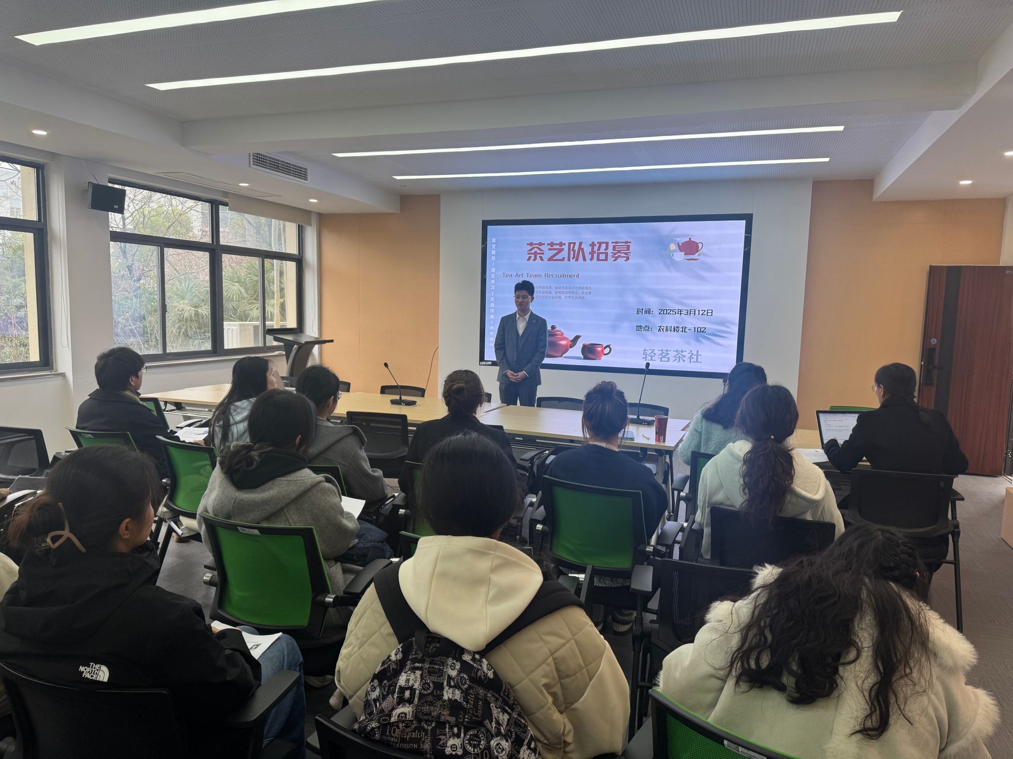 轻茗茶社作为学院致力于传承和弘扬中国茶文化的学生社团,始终秉持着 “以茶会友,以艺修身” 的宗旨,通过组织各类茶艺培训、茶文化讲座、茶席设计等活动,让成员们深入了解茶的历史、文化、品鉴等方面的知识,提升成员们的艺术修养和文化底蕴。