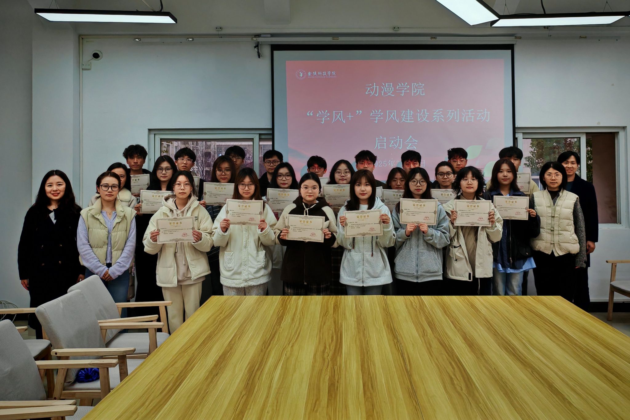 根据学校学工处统一安排,动漫学院将围绕“学风+”这一主题,开展包括“我的金科故事”分享会、“学霸笔记”评选、“黄金作息表”挑战赛、“学风标杆班级”评选、主题班会、特色案例征集等多种形式的活动,希望以此激发学生的学习热情,培养大家的自主学习能力和创新精神,营造积极向上、勤奋好学的浓郁学习氛围。会议对去年审核评估期间在学院学风建设工作中表现突出的班级和个人进行了表彰。经过严格评选,22视觉传达设计(2)班等4个班级荣获学院“学风建设工作先进班级”称号,肖静等19名同学获得学院“学风建设工作先进个人”荣誉。