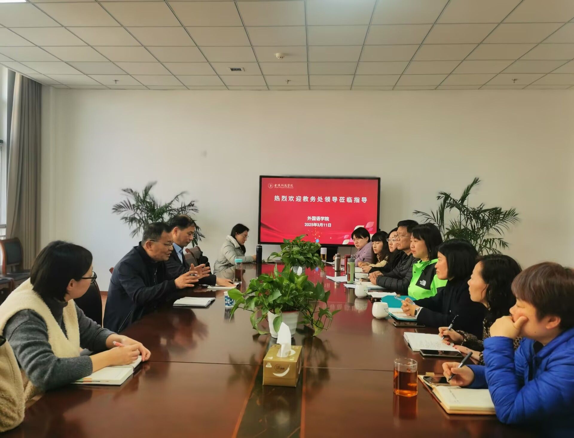 3月11日,教务处处长田祥宏、副处长刘旭明莅临外国语学院开展“AI赋能外语教学”专项调研。外国语学院党总支书记李星、副院长李凤、副院长何文斌及各系室负责人出席会议,双方就人工智能技术与外语教学深度融合展开研讨。