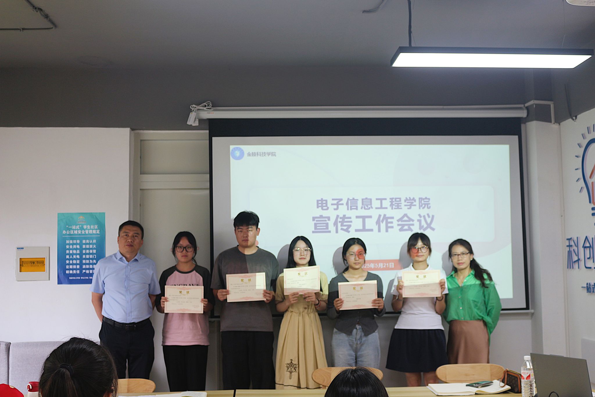 为一步深化宣传工作效能,全方位塑造学院良好形象,5月21日下午电子信息工程学院在北02一站式学生社区召开学院宣传工作会议,电信学院党委书记徐志国、副书记陈智慧、辅导员郭晓,学院团总支学生会宣传部全体成员、推文摄影团队全体成员、23和24级各班宣传委员参与活动。