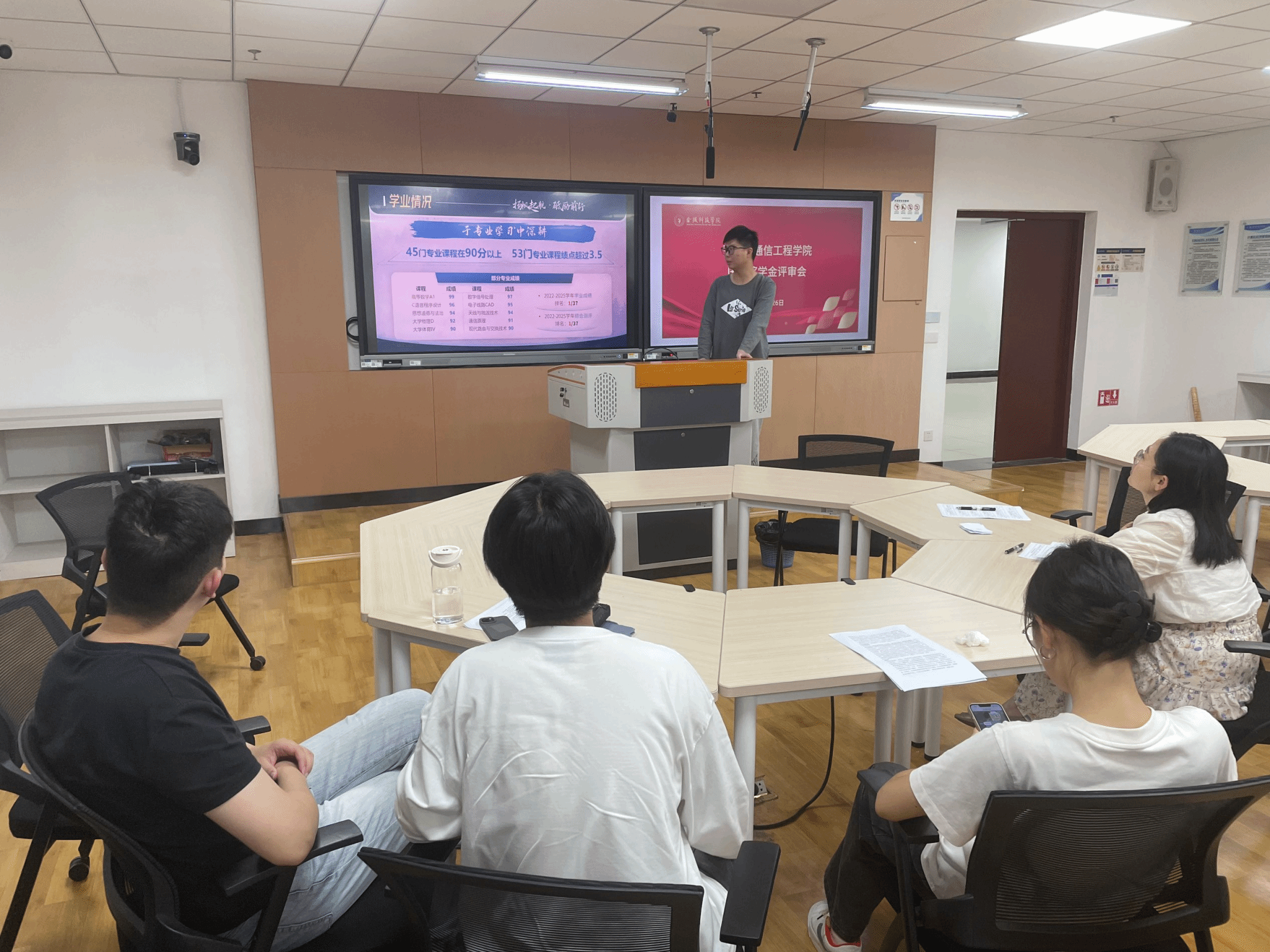 评审过程中,候选人结合个人在思想政治表现、学习成绩情况、荣誉奖励情况、科技创新情况进行了精彩的陈述与答辩。这些同学不仅在学习成绩上名列前茅,还在学术研究上取得了显著成果,发表了多项专利、软著及高质量论文,还在文体活动中屡获佳绩,展现了全面发展的优秀素质。