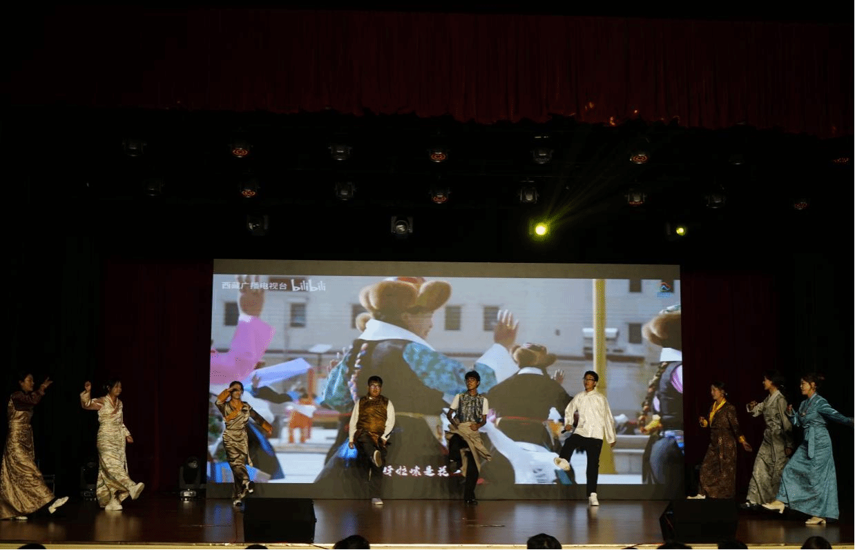 汇演中特别值得一提的是,2025级全体九位藏族同学齐聚舞台,以纯净真挚的歌声演绎了原生态藏族歌曲,为全场带来别具韵味的民族风情,也体现了学院大家庭的包容与温暖。活动尾声,新生辅导员与商学院团总支学生会成员共同献唱《相亲相爱》,将现场气氛推向高潮,歌声中传递出师生同心、携手奋进的精神风貌,为整场汇演画上温馨而有力的句号。