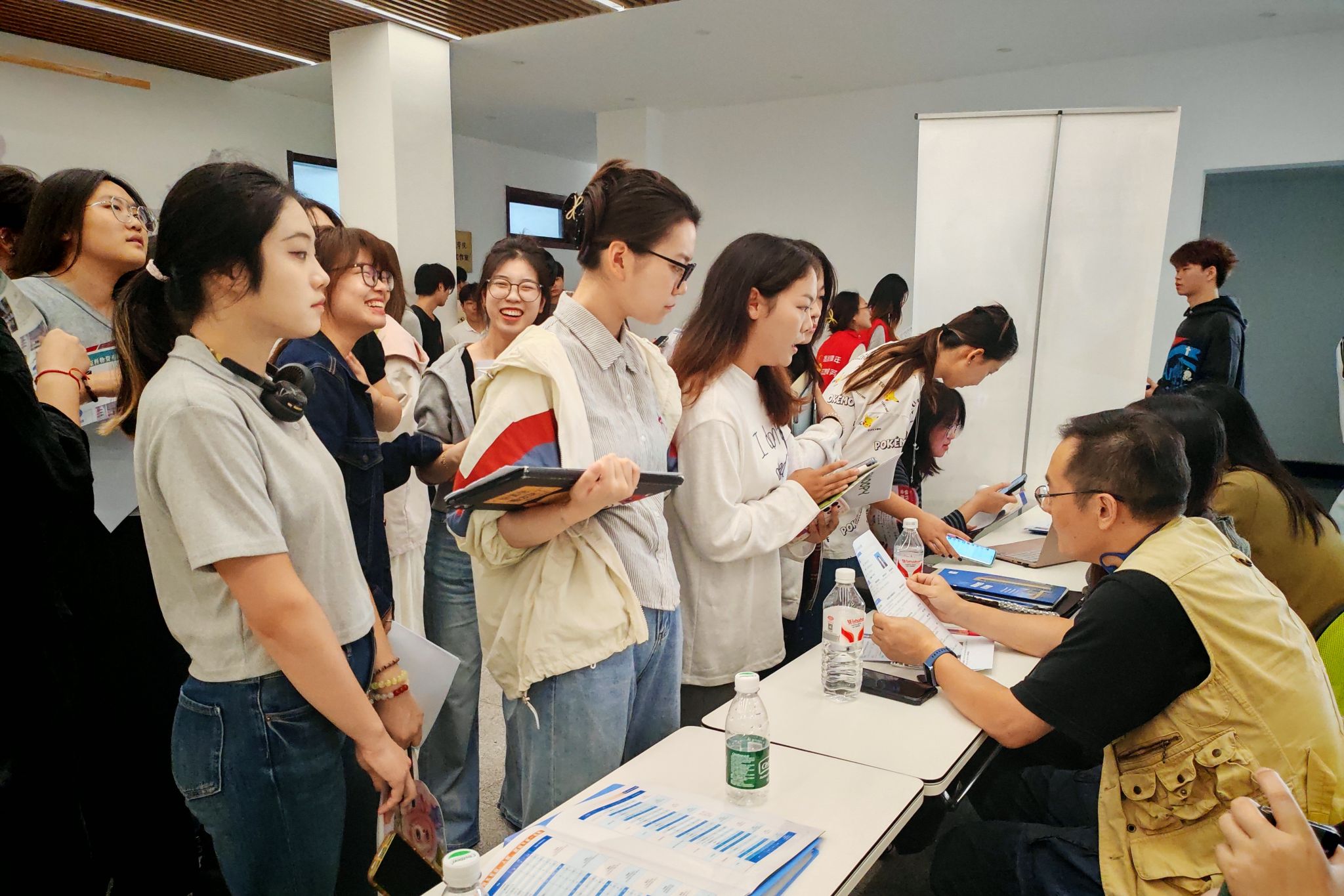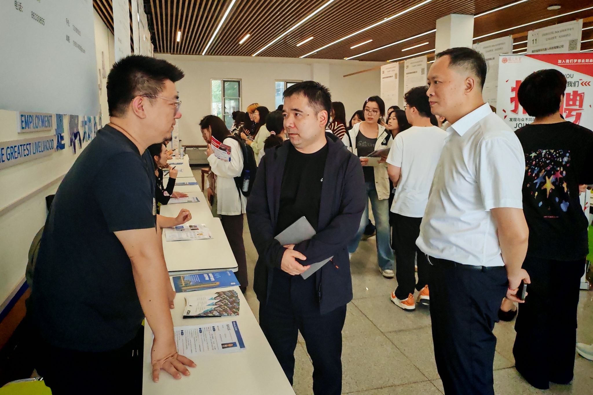 10月15日,sjb世俱杯官方网站2026届毕业生“艺术动漫类”校园招聘会在大学生活动中心一楼大厅火热举行,动漫学院218名毕业班同学,学院党总支部书记葛维东、院长王贤波、副院长王柯,各系部主任、毕业班辅导员参加了招聘会。