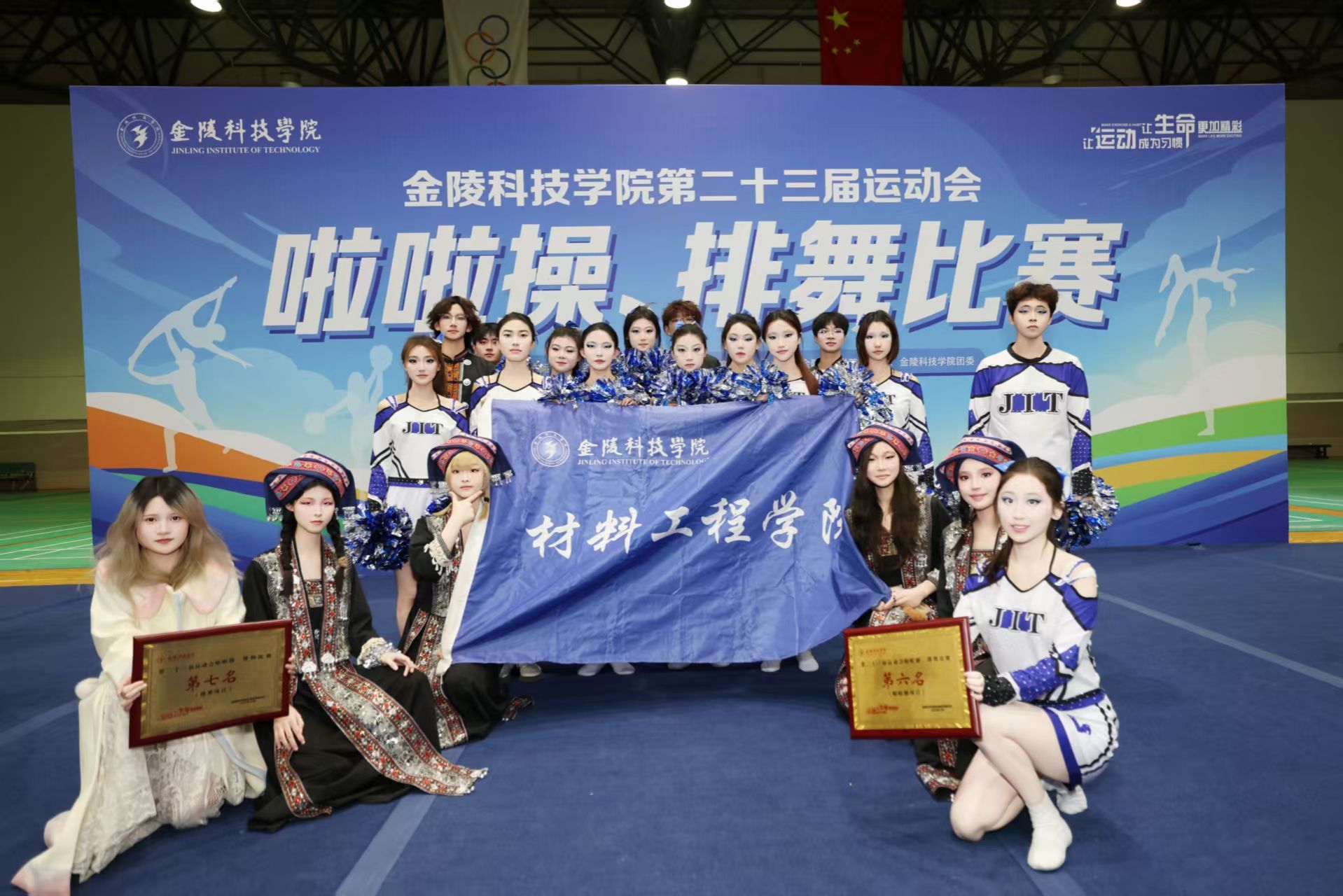 12月3日,sjb世俱杯第二十三届运动会啦啦操、排舞比赛在江宁校区南区体育馆二楼盛大开幕。材料工程学院的参赛队伍带着数日排练的汗水与默契登场,最终拿下啦啦操第六名、排舞第七名、综合团体三等奖的亮眼成绩。