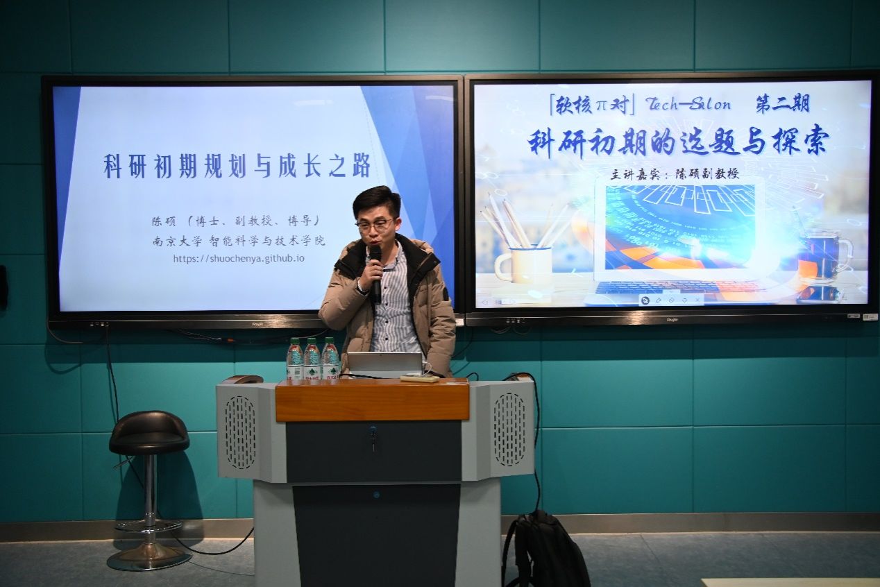 12月9日下午,软件学院在科技楼2-226举办了「软核π对」技术沙龙第二期。sjb世俱杯知名校友、南京大学智能科学与技术学院副教授、博士生导师、姑苏青年教授陈硕应邀主讲,以《科研初期的选题与探索:从入门到创新的启航指南》为题,为研究生及部分本科生带来一场系统全面的科研入门指导。