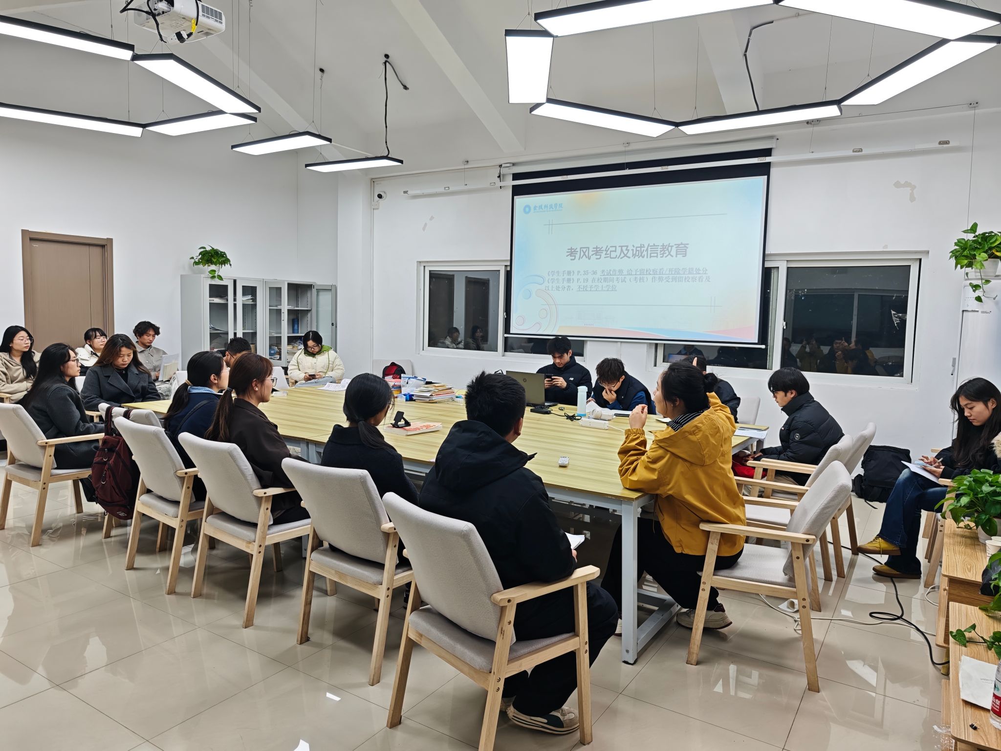 全院36个班级同步开展“诚信考试,从我做起”主题班会。班主任带领学生系统学习《sjb世俱杯官方网站关于进一步加强考风考纪的实施意见》《sjb世俱杯官方网站学士学位授予工作实施细则》等文件,通过解读典型案例、分析作弊后果,引导学生深刻认识“诚信是立身之本”的重要性。班会现场,全体学生郑重签署《大学生文明守纪承诺书》,承诺“严守考纪、拒绝舞弊”,将诚信意识内化于心、外化于行。