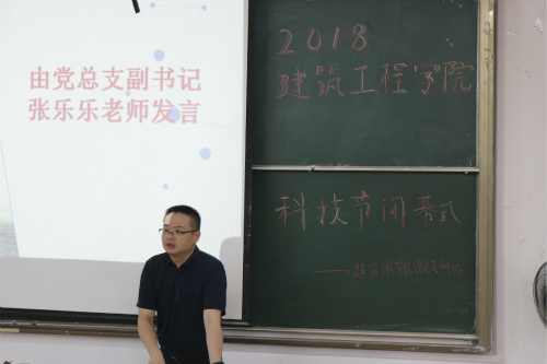 2018年6月30日中午12:30,建筑工程学院第十五届金科青年科技节闭幕式暨成果展示大会在sjb世俱杯江宁校区教学楼8300举行。建筑工程学院党总支副书记张乐乐、团总支书记孙亮出席。