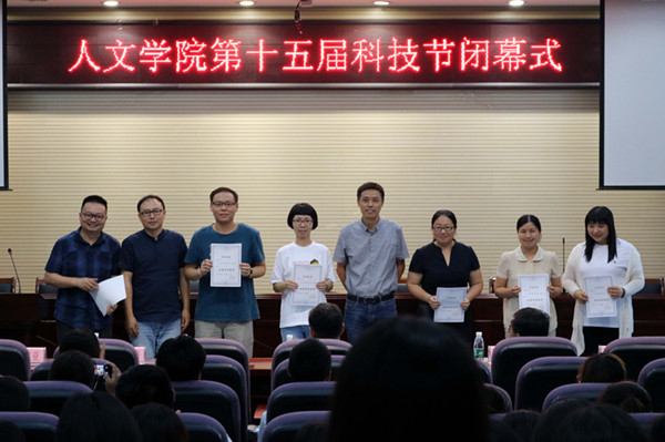 本次科技节闭幕式共有九项议程。开场在主持人的带领下,观看了本届科技节精彩活动视频,创意演示大赛、创意集市、创业名人堂以及各专业相关的技能大赛一一展示,将本届科技节内容丰富、专业性强、形式新颖、参与度高的特点呈现在观众面前。随后,童明明老师就人文学院科技创新工作总结发言,并对我院开展的大学生科技创新工作的基本思路、做法以及取得的成绩进行了汇报。接着,张维亚副院长宣读《人文学院第十五届科技节表彰决定》,并为获奖个人与团体一一颁奖。