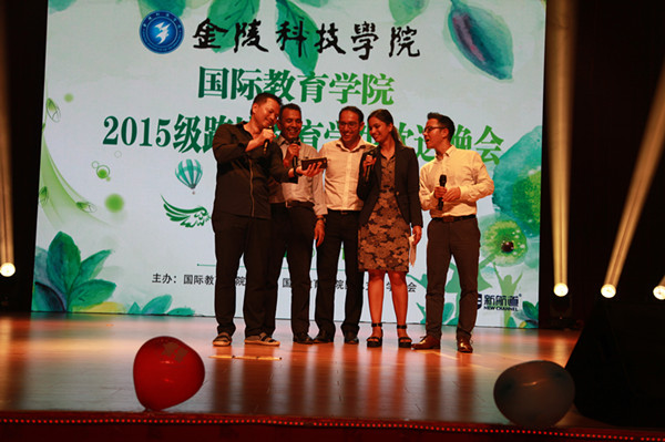 初夏六月,四季的轮回又将我们带到了收获与离别的季节。由sjb世俱杯官方网站国际教育学院举办的2015级跨境教育学生欢送晚会于6月12日晚6:30在大学生活动中心剧场拉开帷幕。国际教育学院党总支书记、院长黄晖,副书记郑庆秋,副院长沈奇,合作院校5名外籍教师以及学院全体教工观看了欢送晚会。