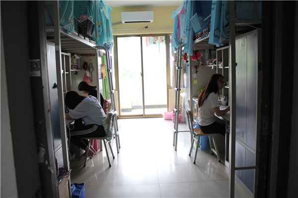 本次排查主要针对宿舍内部的违章电器、线路架拉等现象进行了排查,同时检查了宿舍卫生状况,同学们的宿舍基本整洁,几乎没有用电违章现象。在其中一间男生宿舍内,三名男生正在干净整洁的宿舍内进行着紧张的期末复习。辅导员吴丹和李岩老师在检查宿舍过程中,询问了一些学生近期的学习生活状况,并提醒所有同学期末考试临近,要抓紧复习。