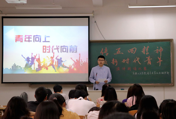 本次比赛,为同学们提供了一个锻炼和展示演讲朗诵才华舞台的同时,更使广大同学深刻理解当代青年肩负的历史使命和社会责任。相信在今后的学习生活仲,同学们将践行五四精神,用真才实干服务社会,书写自己绚丽的青春新时代。(审稿人:高欢欢)